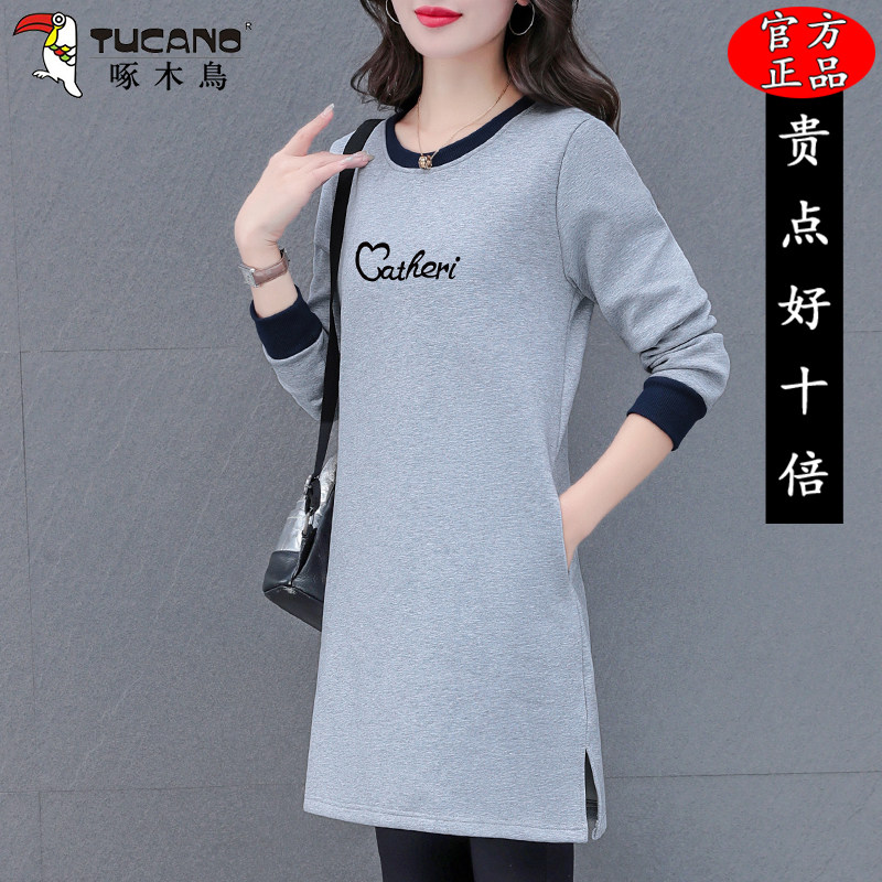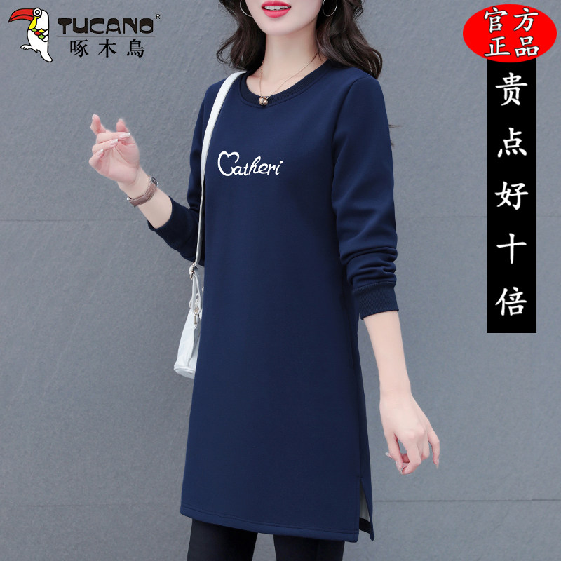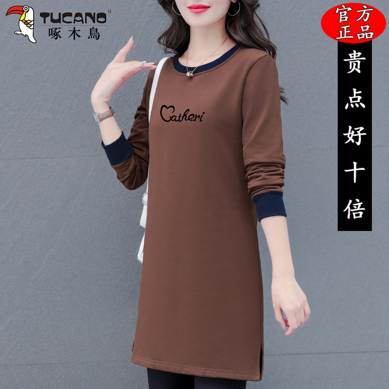 啄木鸟初秋长袖连衣裙女士春秋季2025年新款宽松裙子小个子中长款