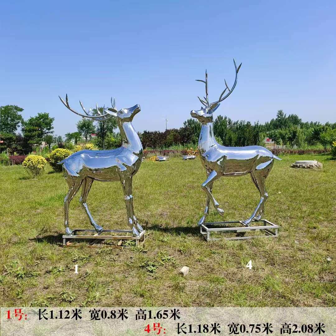 不锈钢镜面鹿动物雕塑户外园林景观装饰大型创意落地摆件厂家