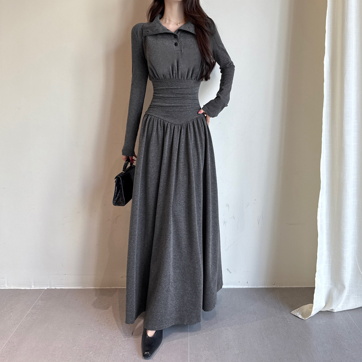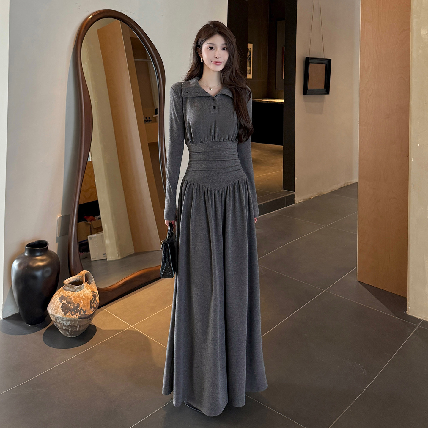 小可wiwi气质复古高领秋冬打底连衣裙女修身褶皱收腰显瘦A字长裙