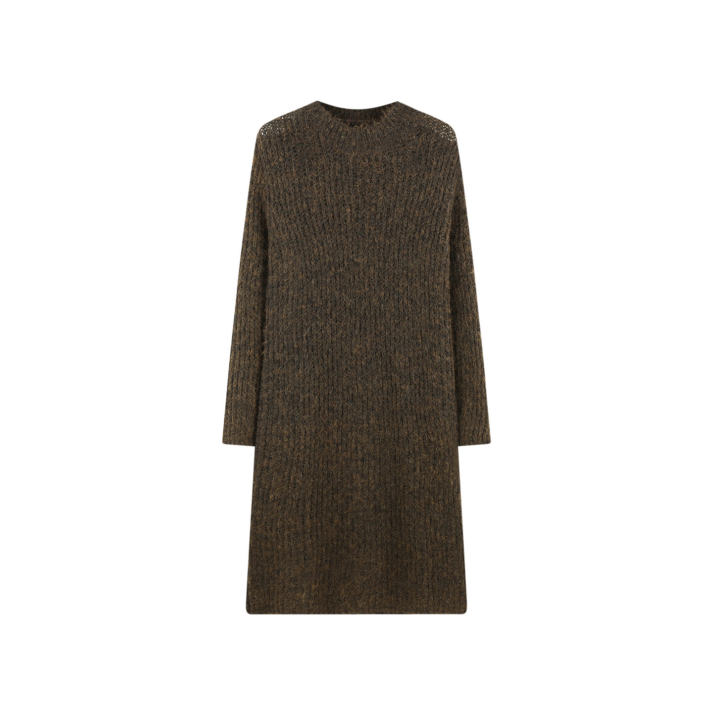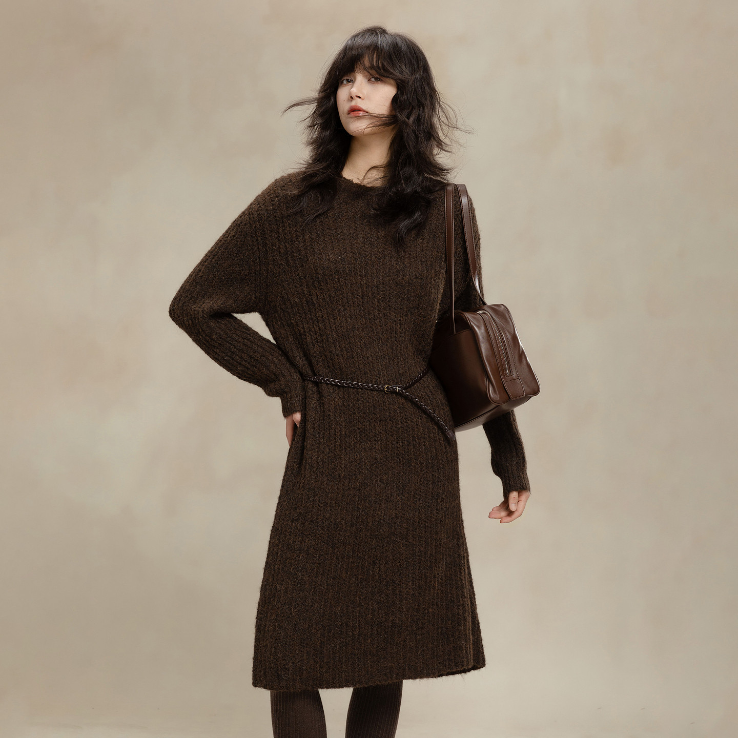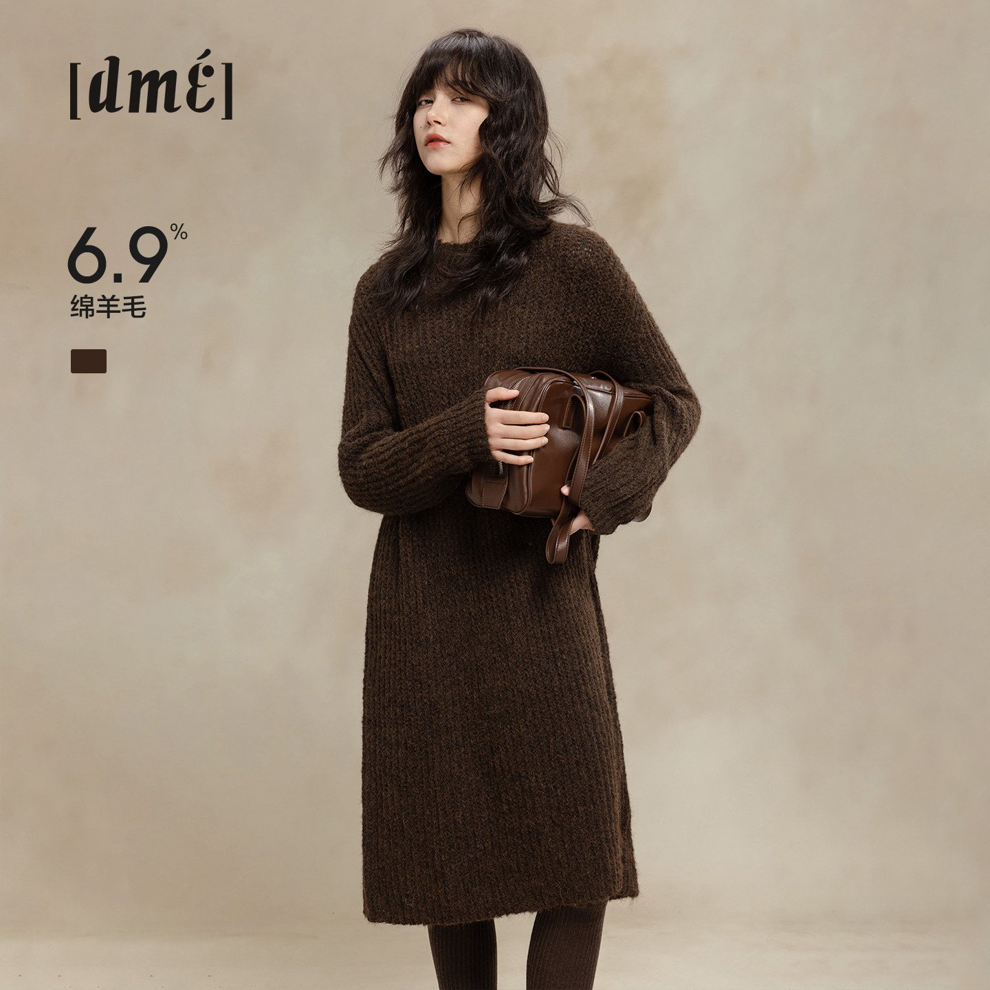 德玛纳慵懒温柔绵羊毛针织连衣裙女冬季宽松直筒圆领小个子中长裙