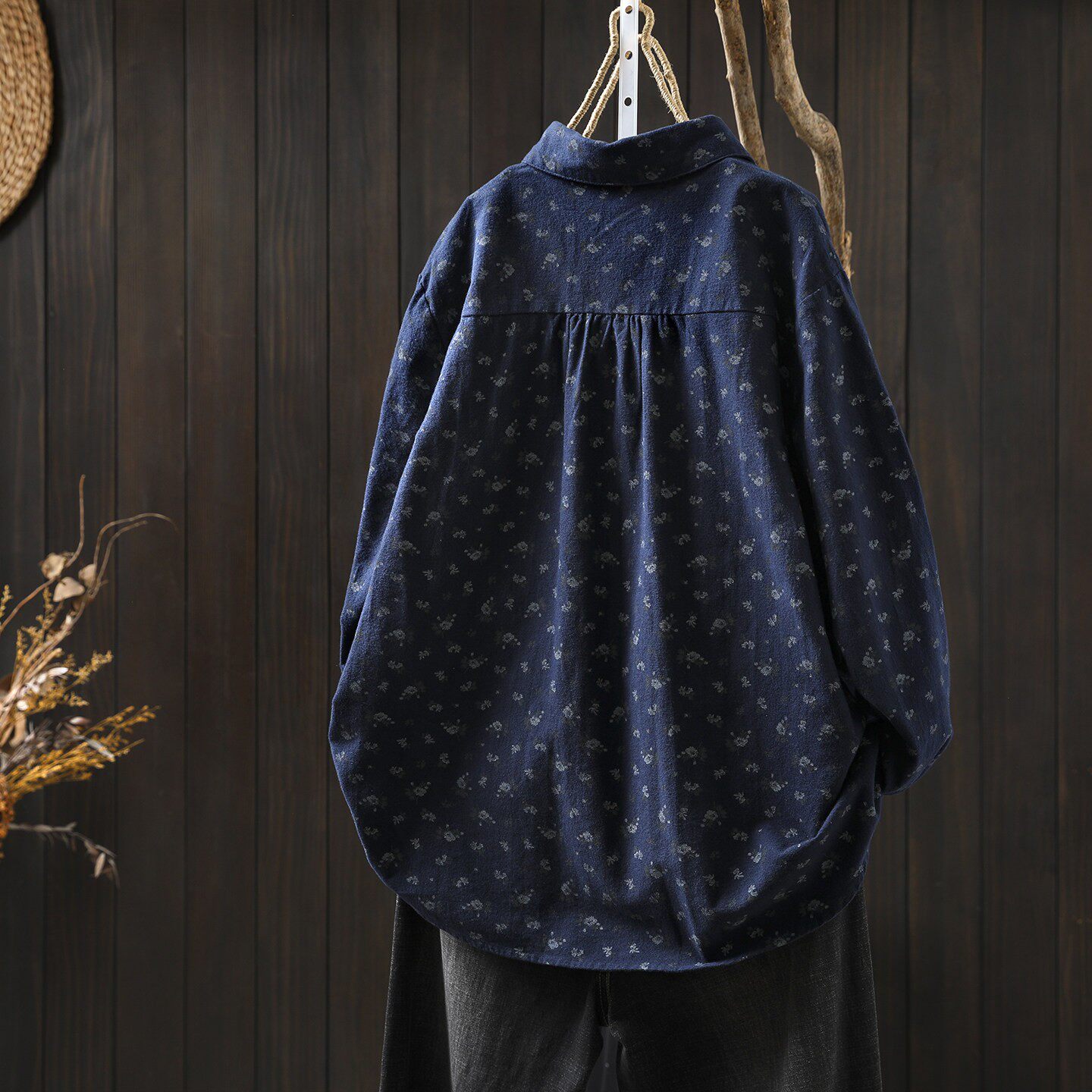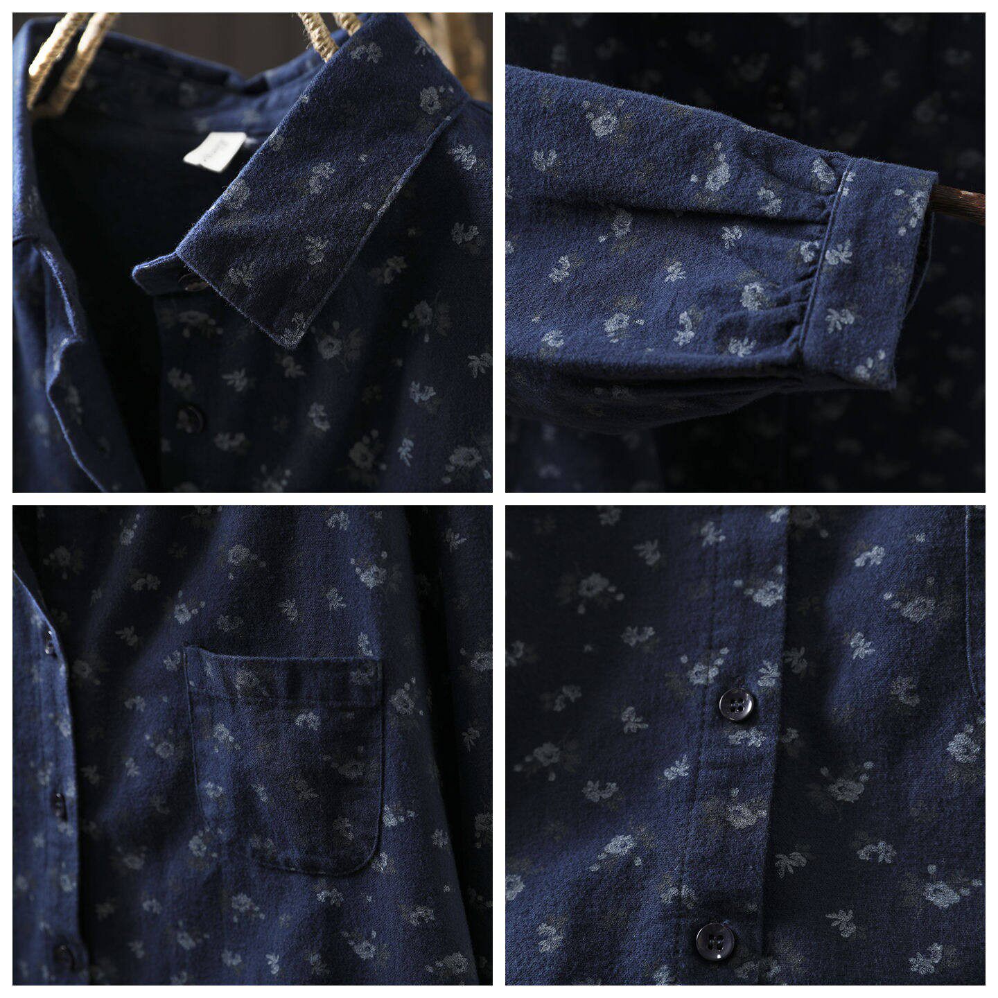 碎花衬衫女款2026新款春装磨毛纯棉印花别致复古港风休闲宽松衬衣