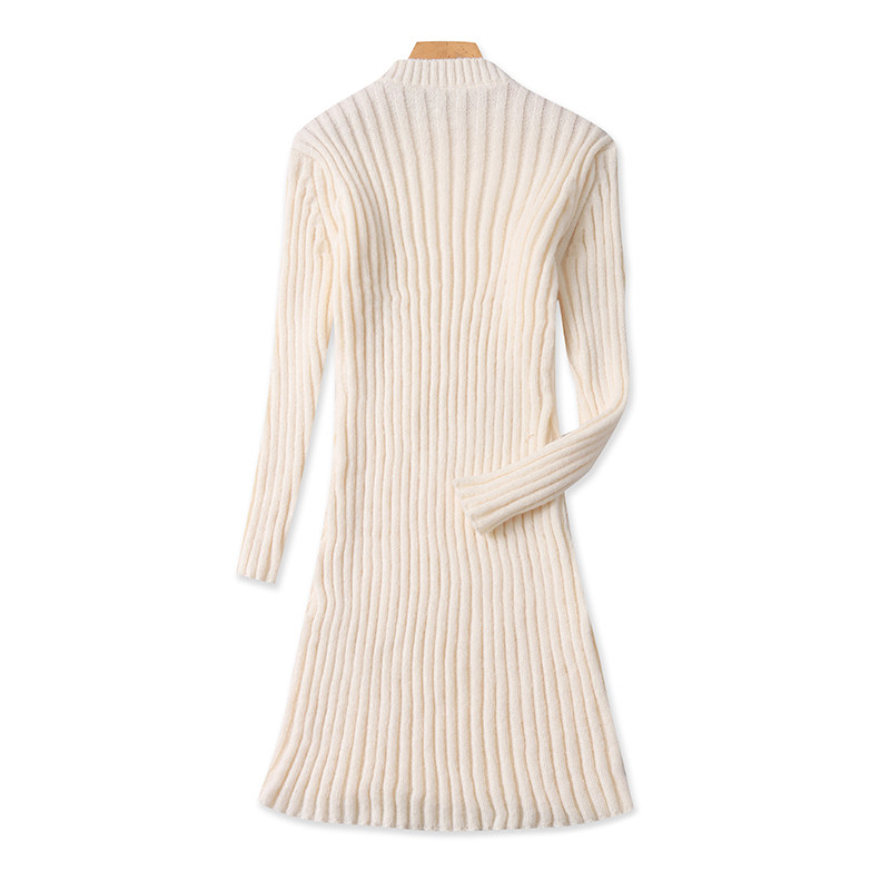 立领修身连衣裙 秋冬新款弹力收腰A字显瘦女中长款毛衣裙子 14074