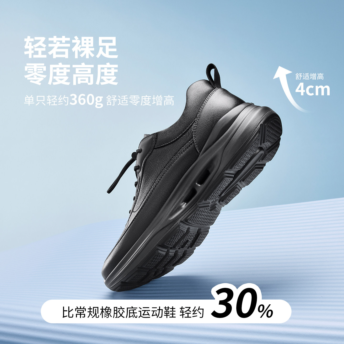 奥康 男鞋2026春季新款时尚休闲鞋百搭经典黑色皮鞋增高轻运动鞋