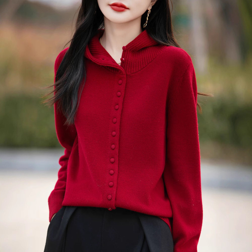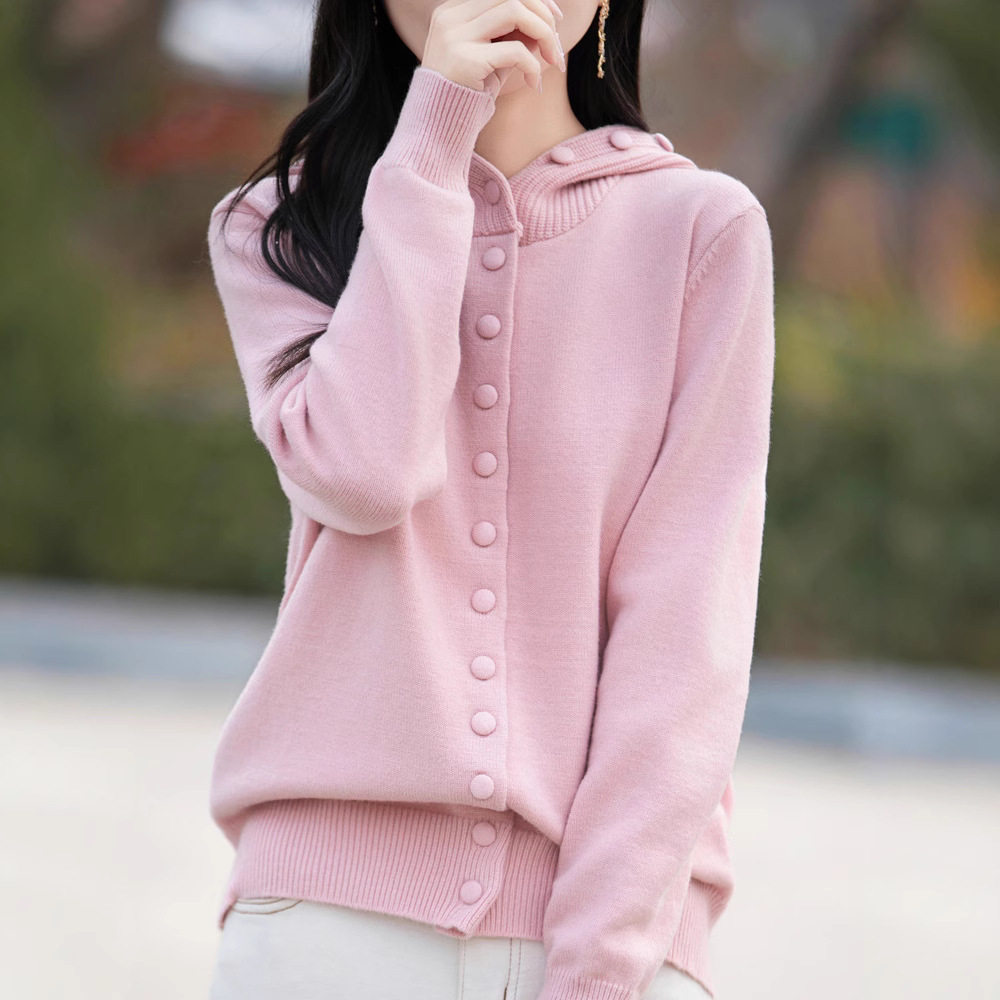 秋冬大朗针织衫不起球女新款正品连帽开衫外套宽松减龄帽衫毛衣