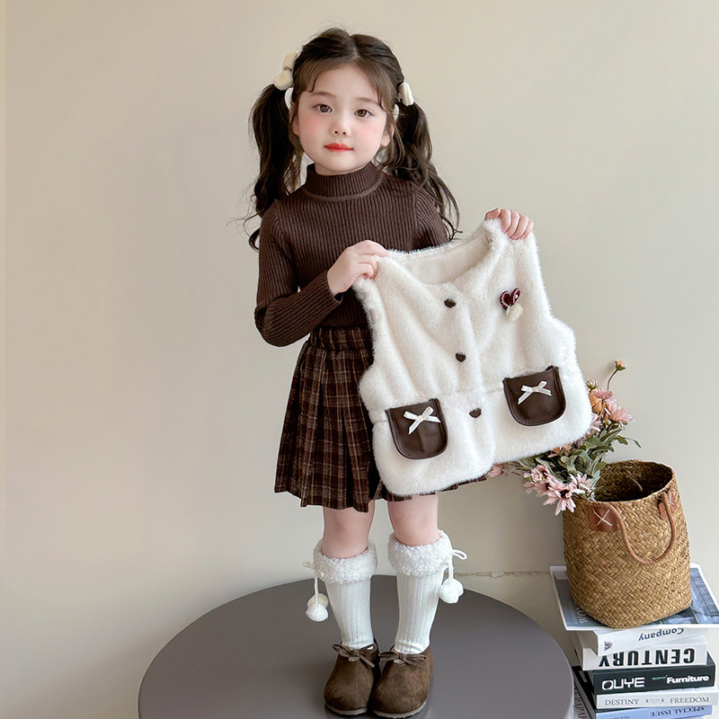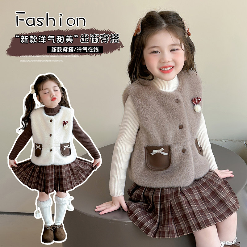 女童连衣裙套装新款洋气时髦儿童马甲毛衣裙小女孩小香风秋冬衣服