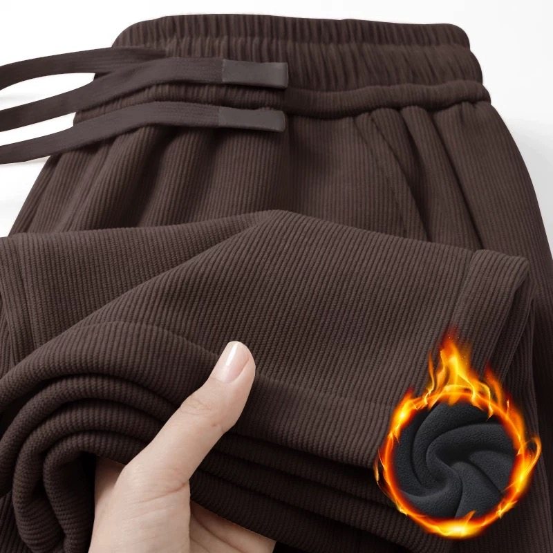 秋冬季加绒加厚灯芯绒裤子男款卡其色垂感宽松休闲卫裤直筒运动裤