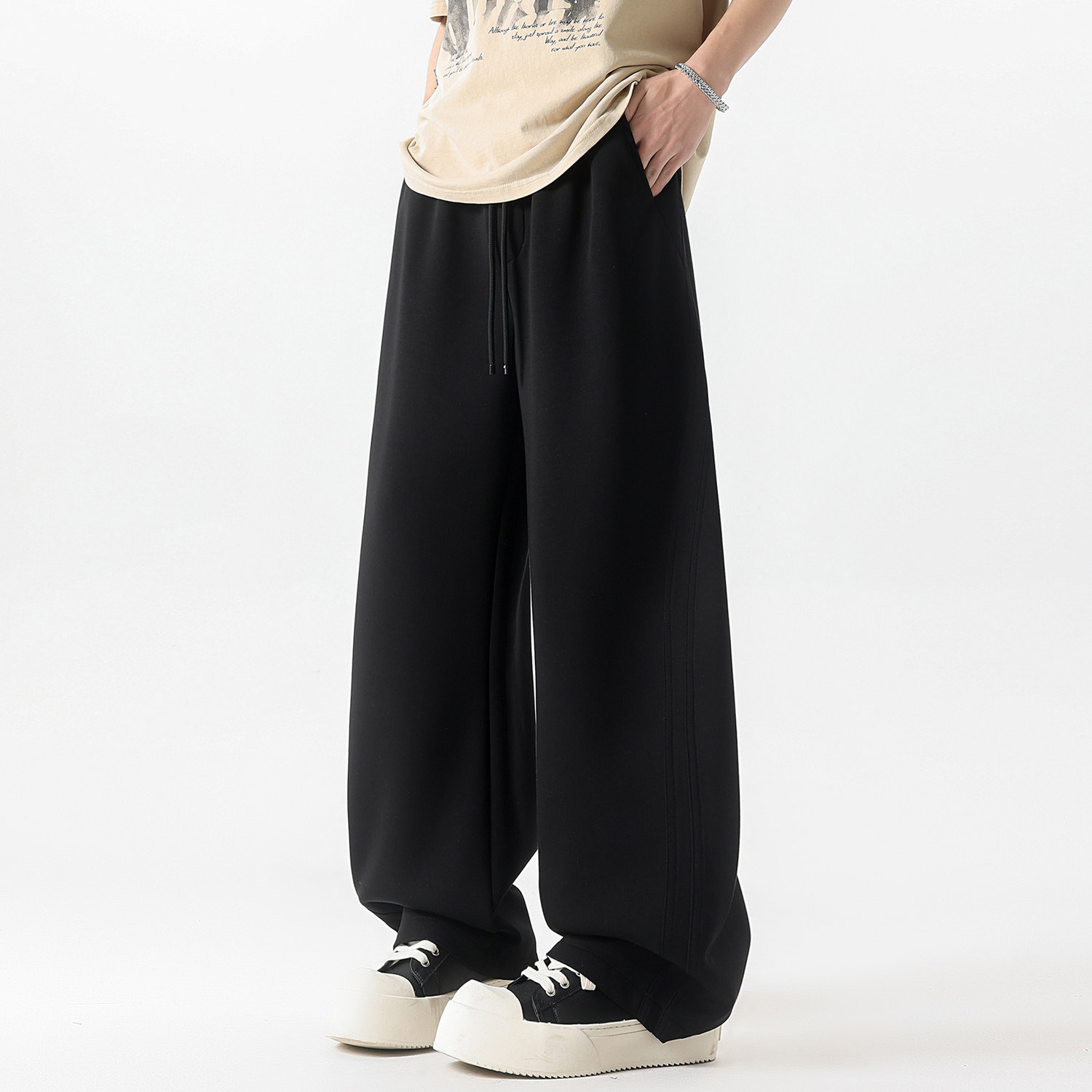 ZMOGEE秋冬季加绒卫裤男款美式宽松直筒裤子垂感百搭运动休闲长裤