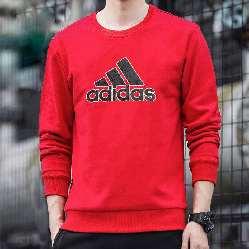 阿迪达斯红色卫衣男2024秋季新款运动服休闲长袖套头衫外套HZ3025