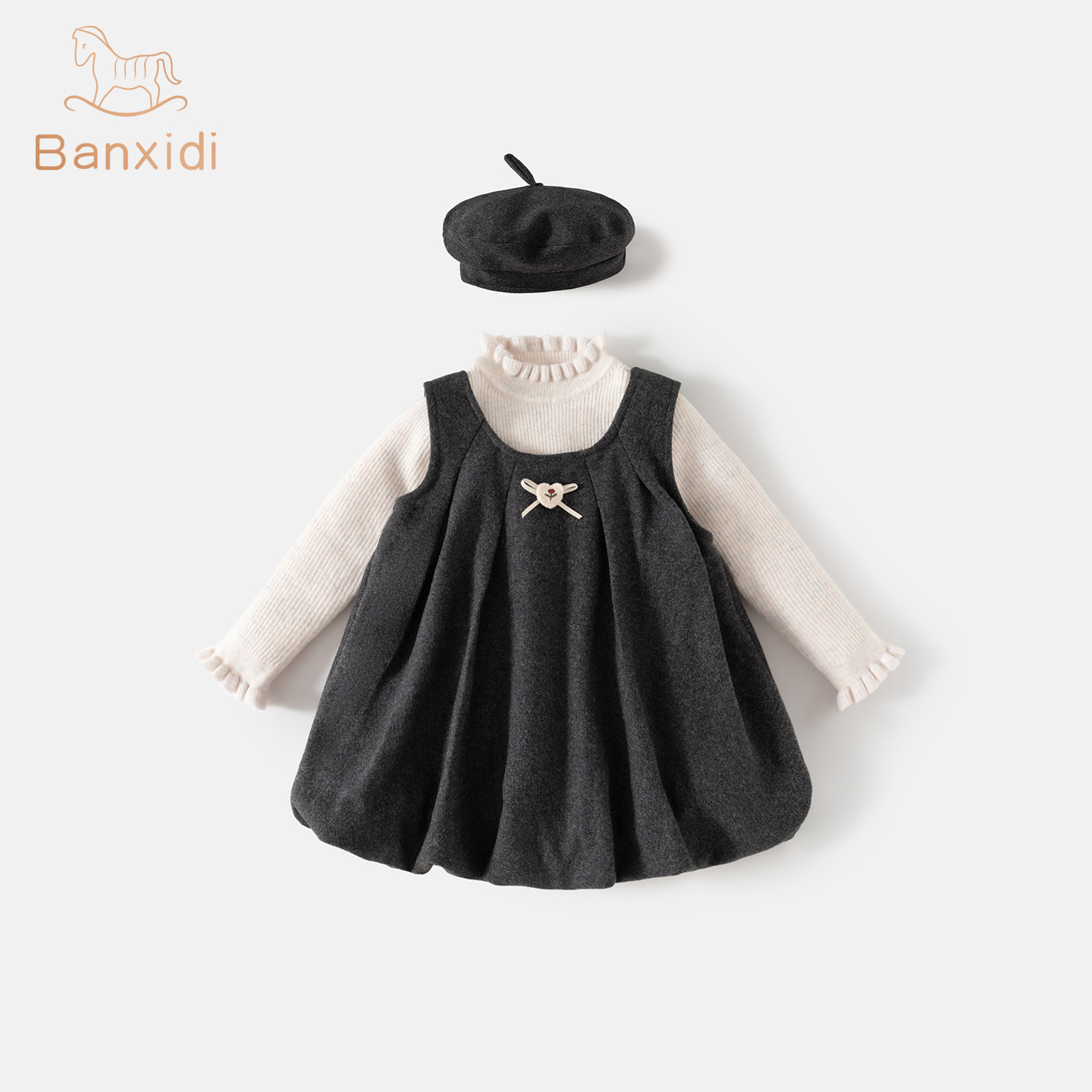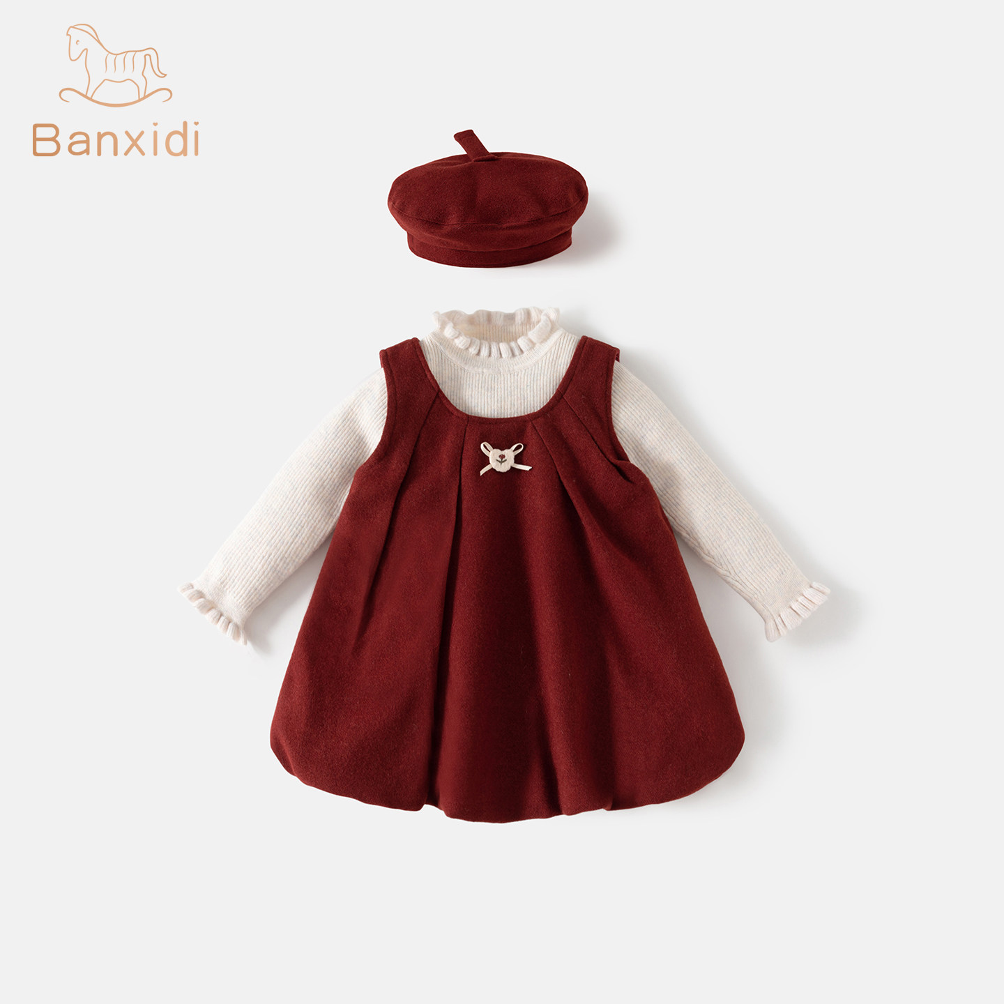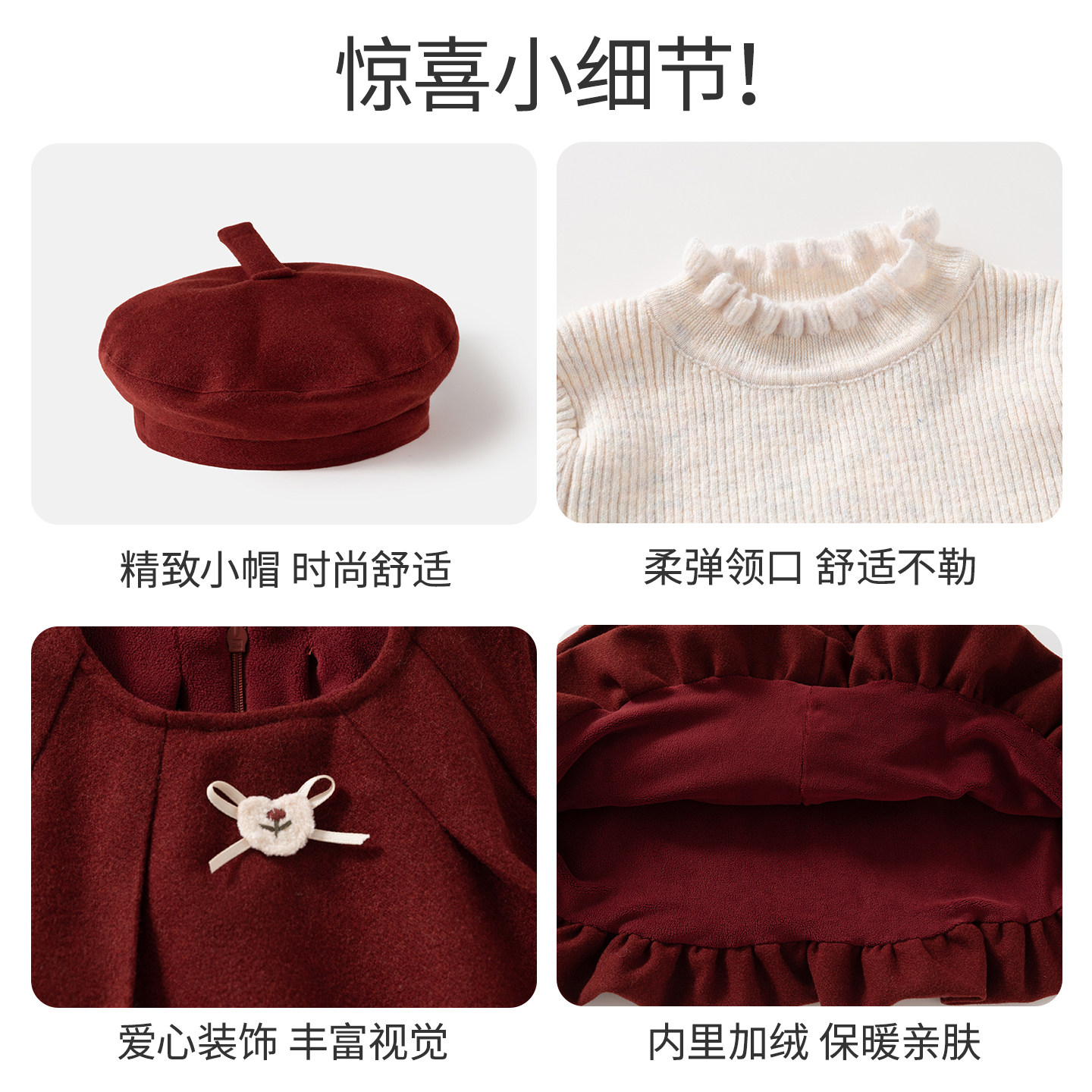 班喜迪女童连衣裙冬装小香风裙子宝宝周岁礼服加绒套装冬季拜年服