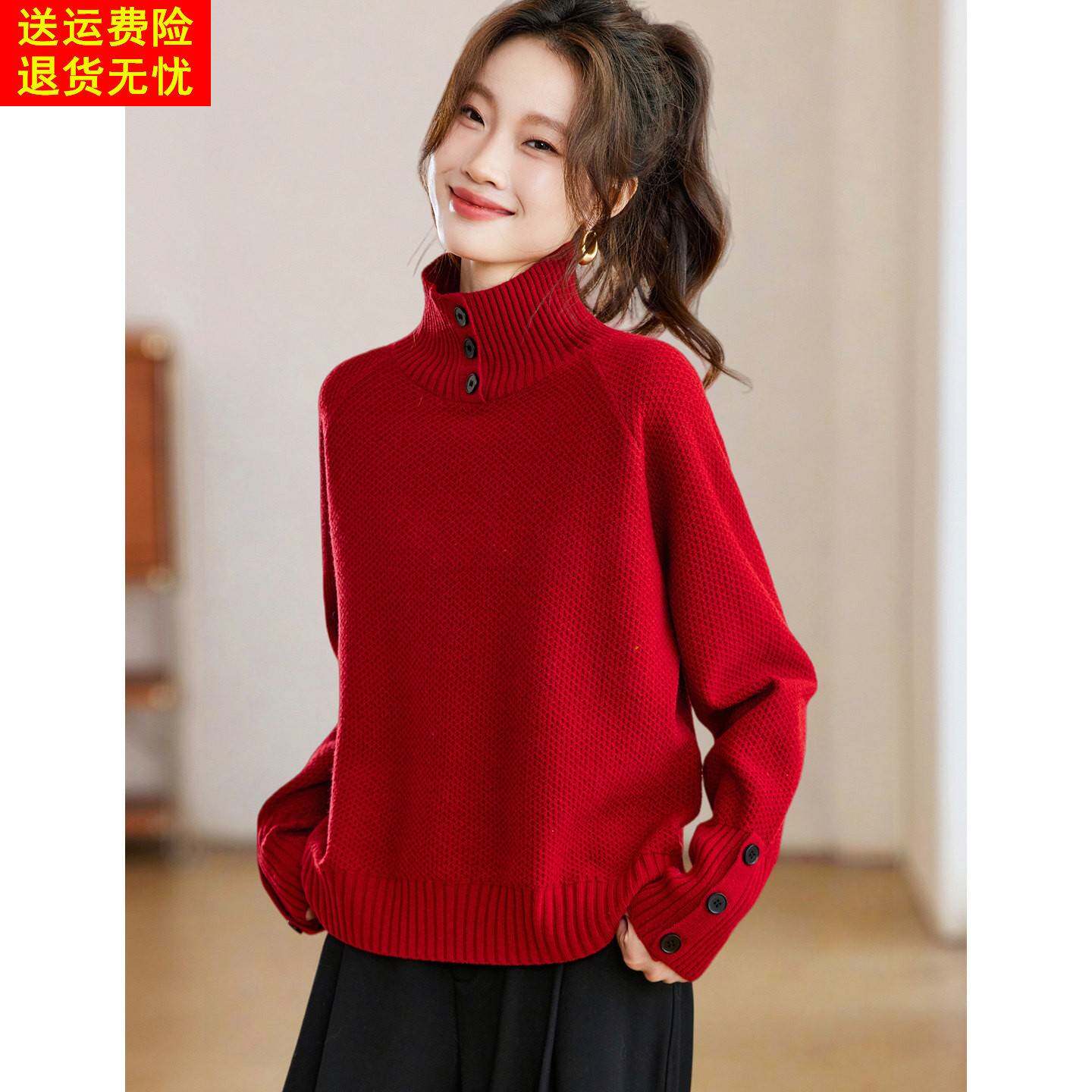 2025冬装新款跨年红色半高领毛衣打底超好看显瘦通勤针织上衣女装