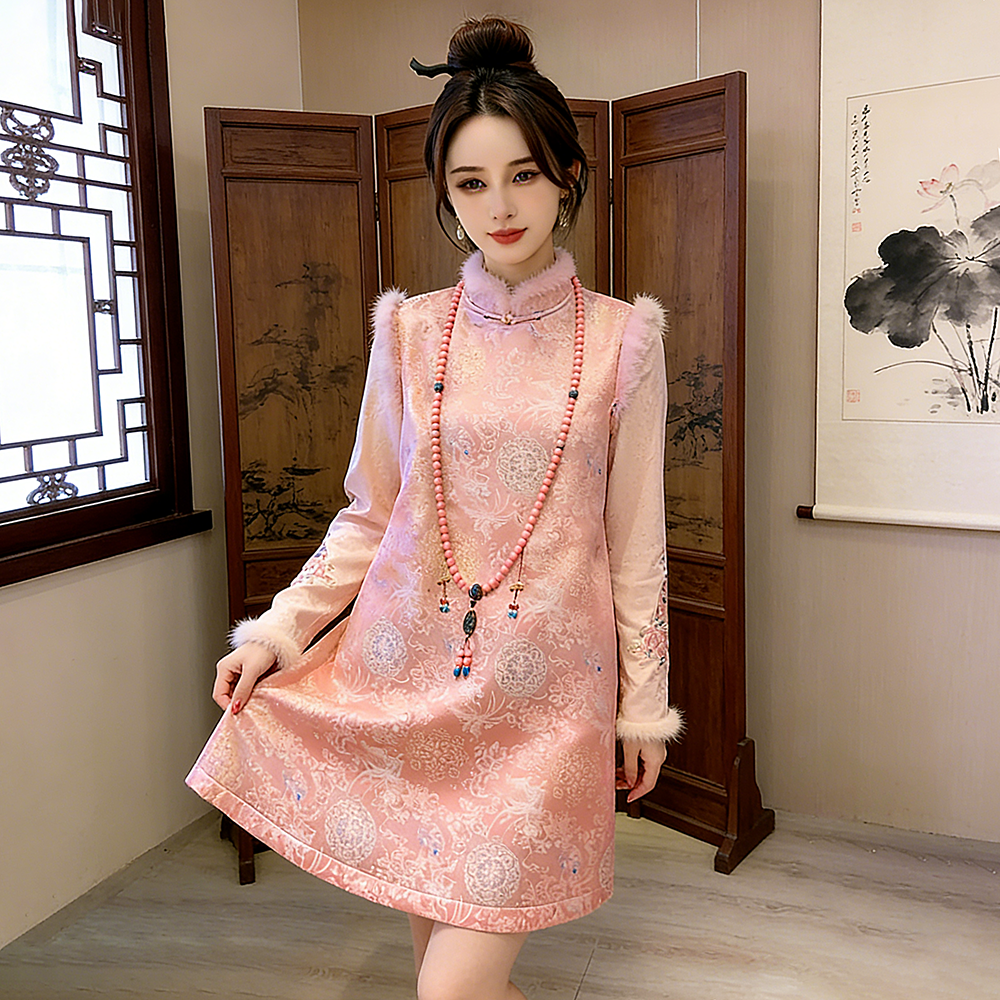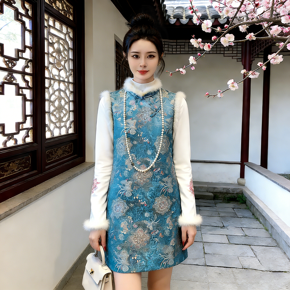 国风大码套装女装2025款冬高级感马甲裙新中式加厚小衫连衣裙胖mm