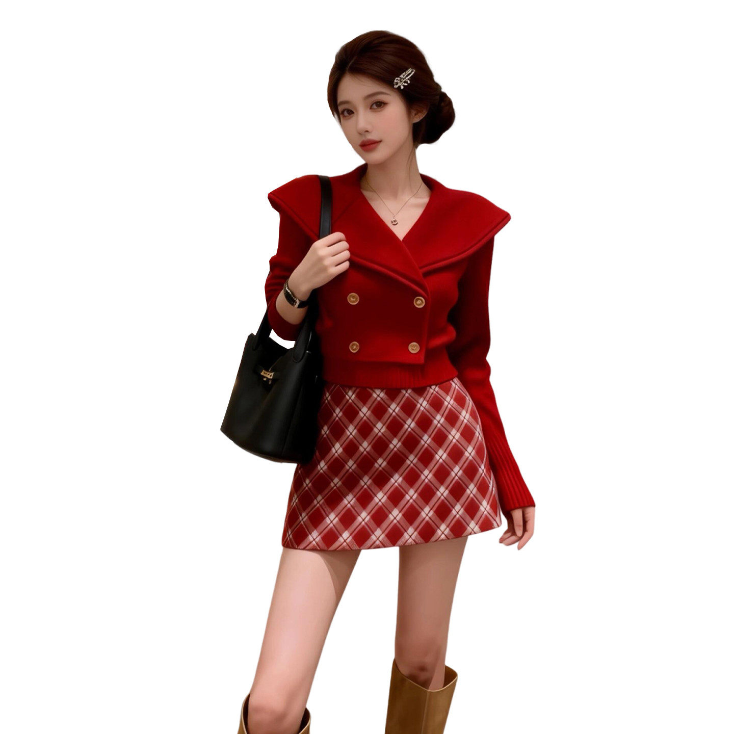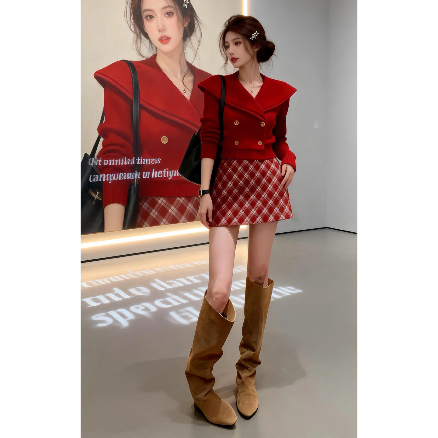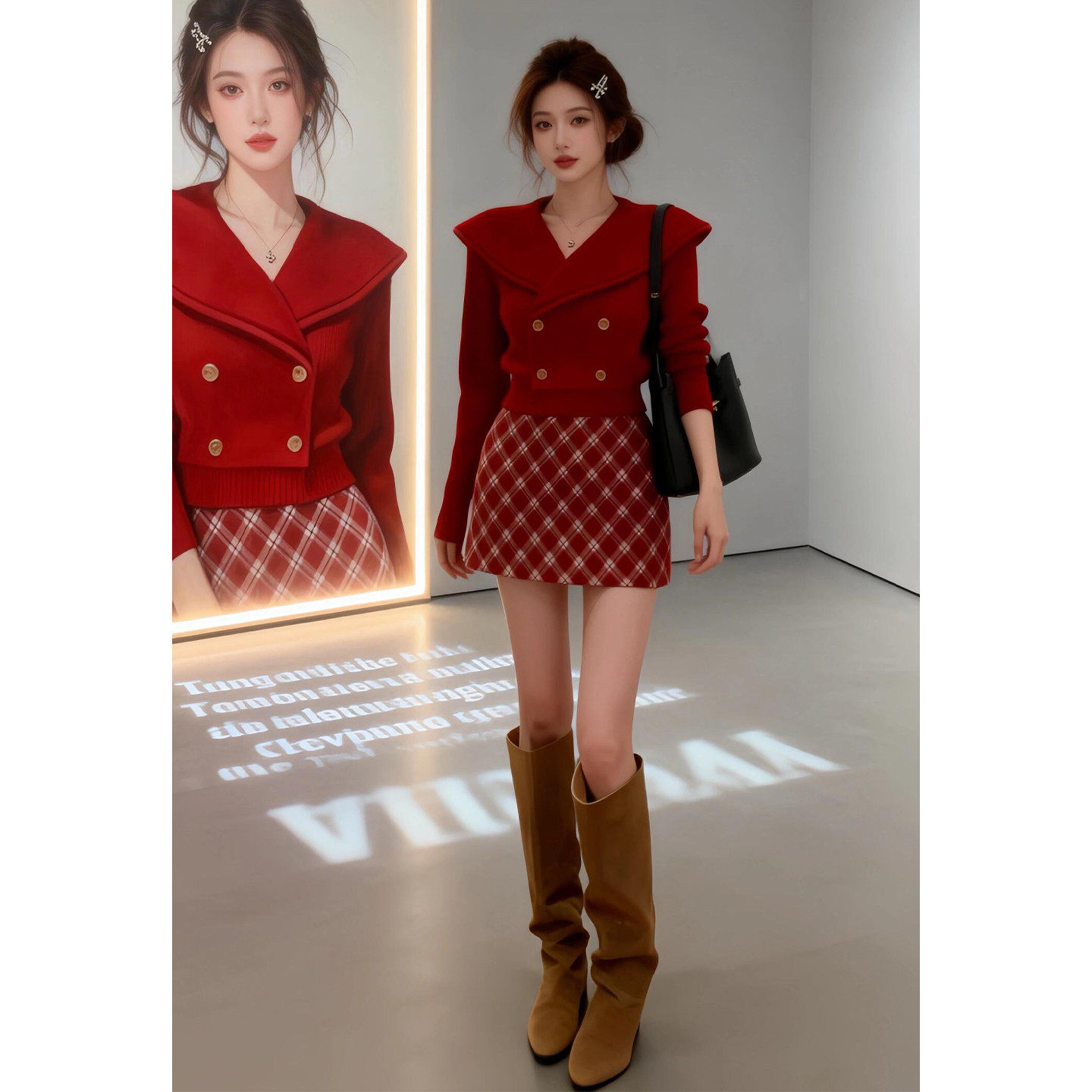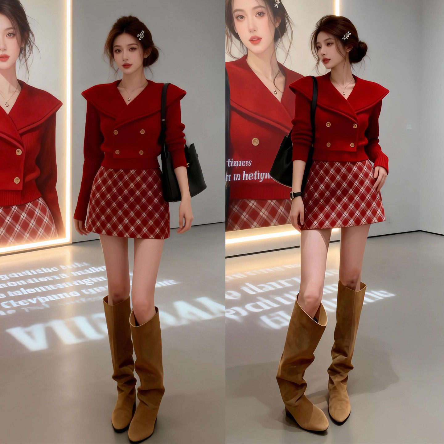 新年战袍红色针织套装连衣裙子女春季2026新款小个子香风绝美短裙