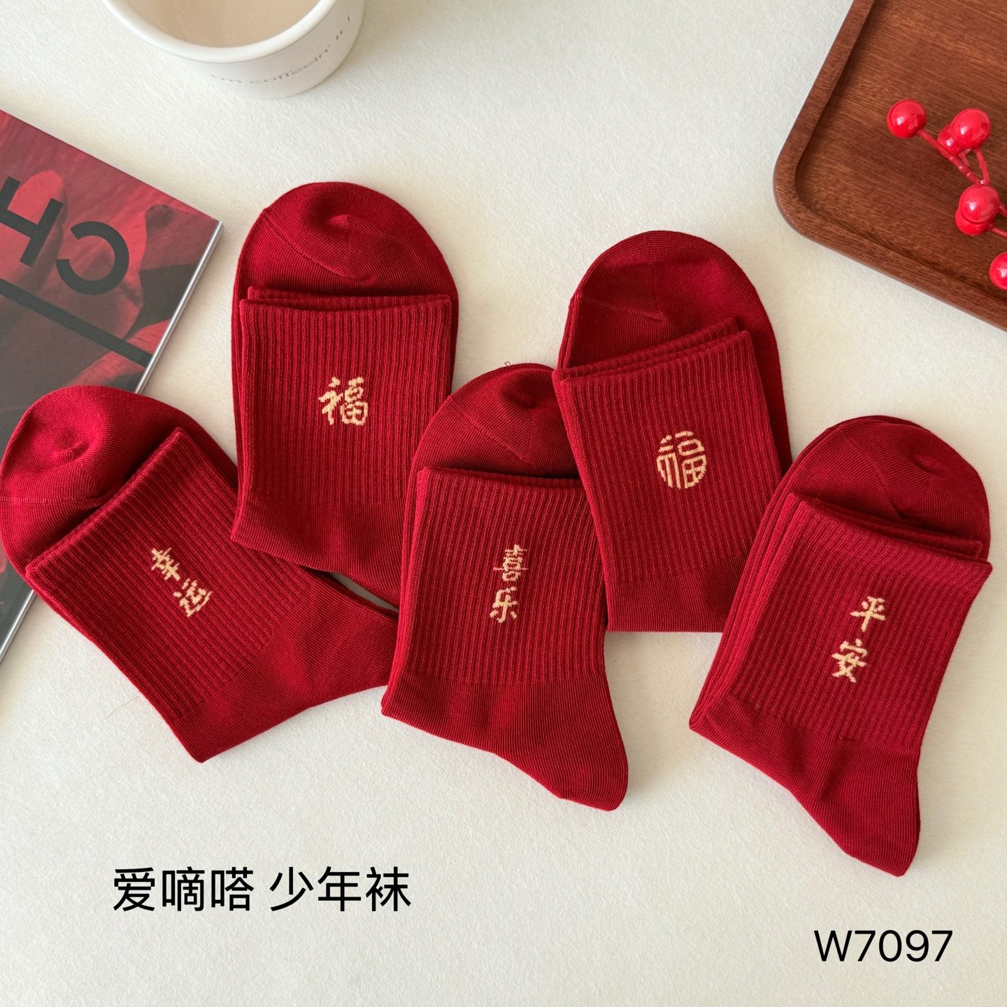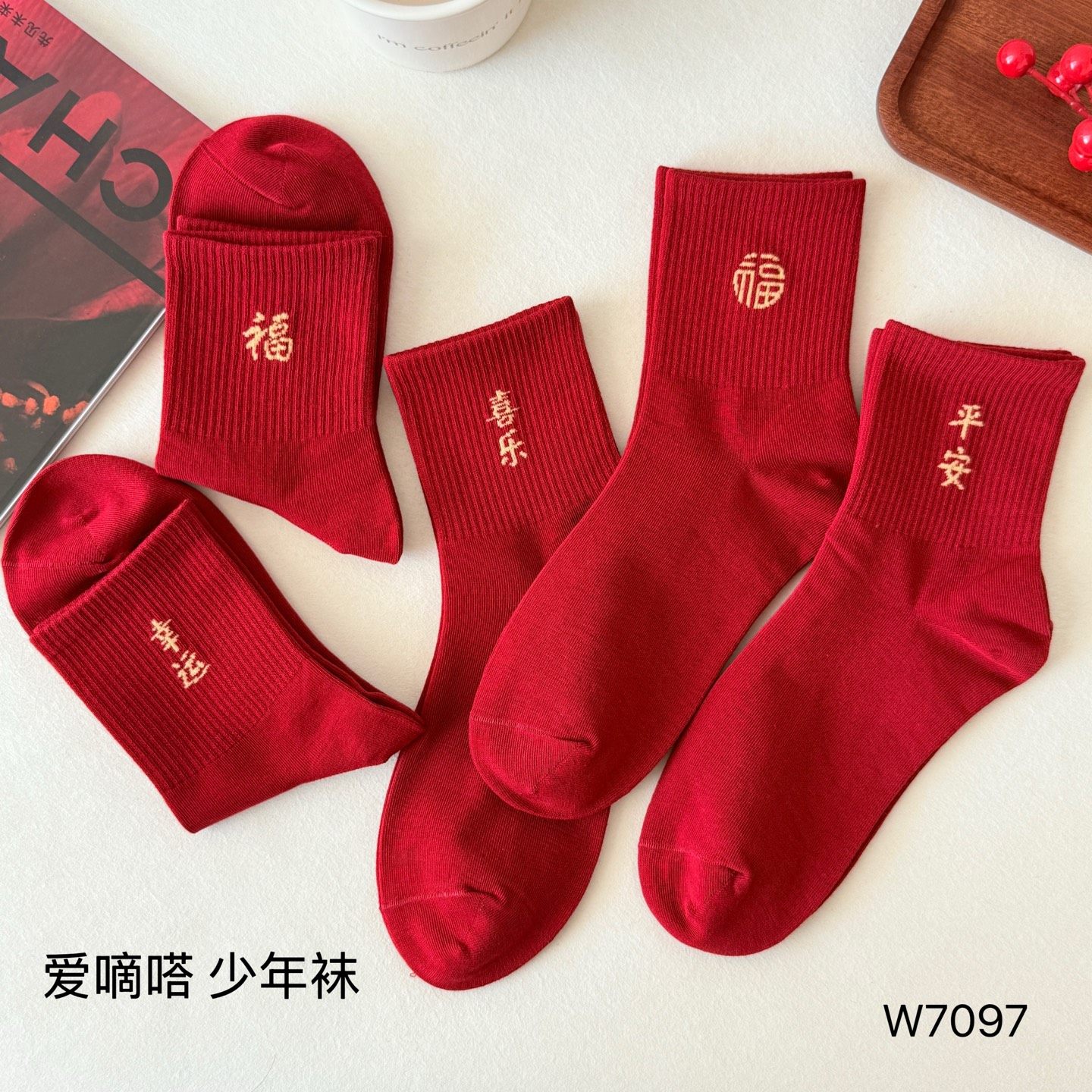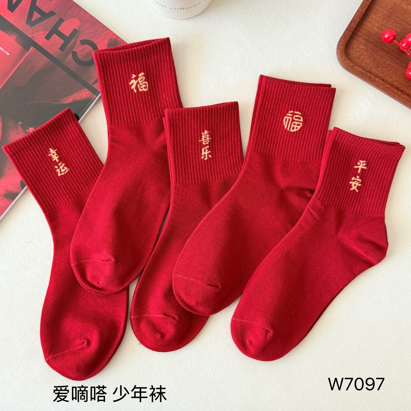 爱嘀嗒秋冬中筒袜子红色本命年棉袜男女平安喜乐大码青少年学生袜