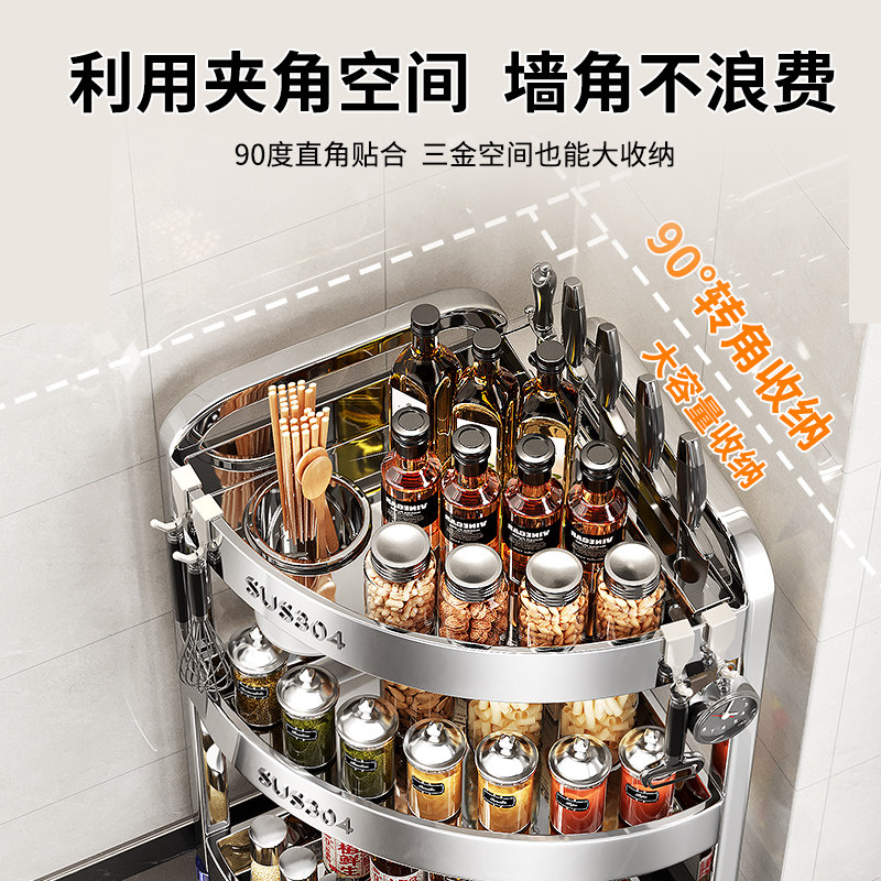 304不锈钢厨房台面调料置物架调味品三角转角多功能墙角落收纳架