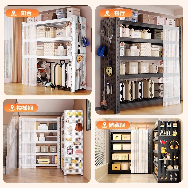 带洞洞板防尘帘货架多层置物架超强承重卧室客厅阳台储物架收纳架