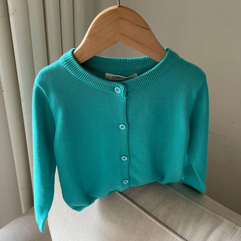 儿童春季新款蓝色毛线衣男童女童宝宝2026韩版纯棉开衫小孩毛衣潮