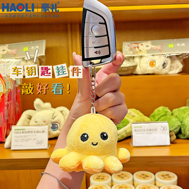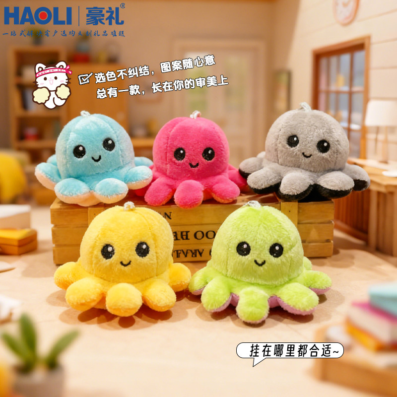 变脸心情小章鱼公仔钥匙扣双面翻转翻面玩偶挂饰毛绒情侣包包挂件