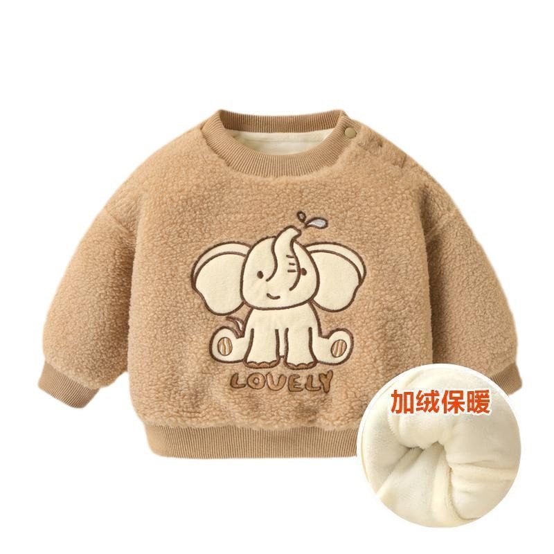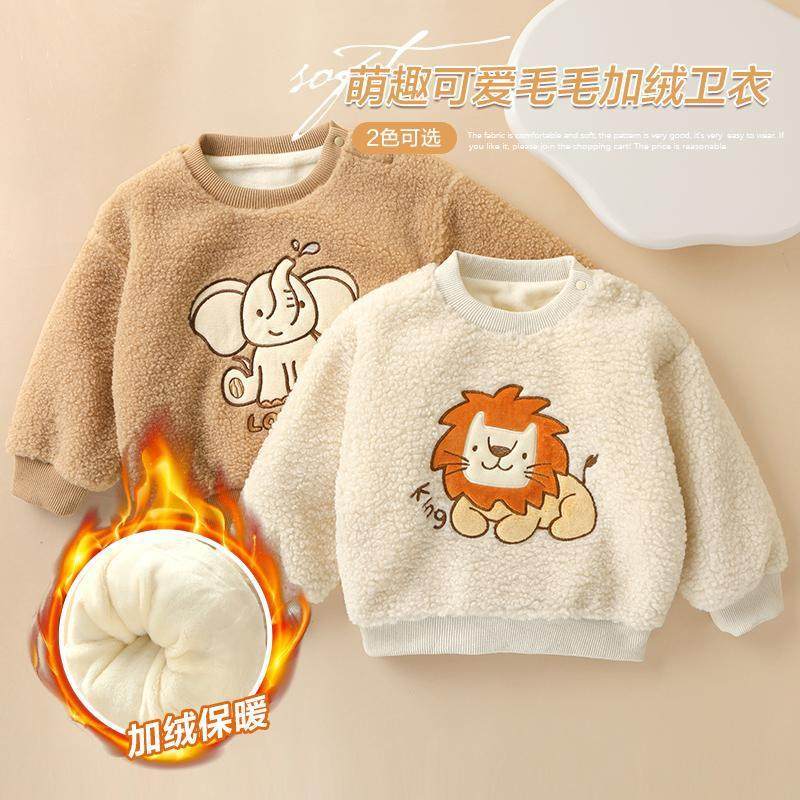 男童卫衣加绒加厚宝宝冬装儿童卡通羊羔毛套头衫冬季小童保暖上衣