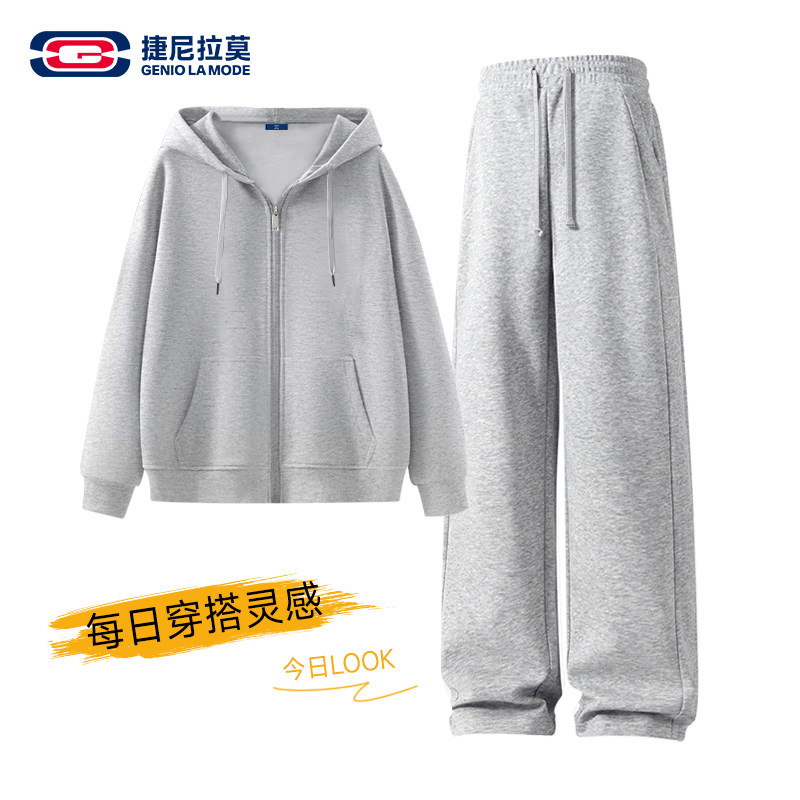 【敖瑞鹏代言】捷尼拉莫连帽开衫卫衣女款外套秋季灰色休闲裤套装