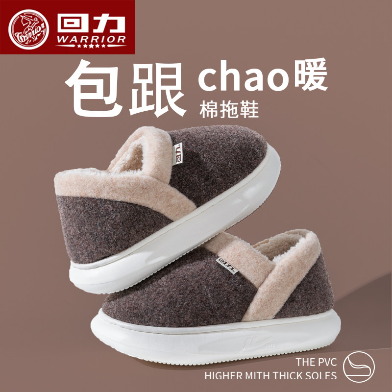 回力棉拖鞋男士冬季包跟厚底室内居家居保暖加绒加厚棉鞋女款冬天
