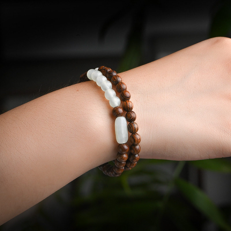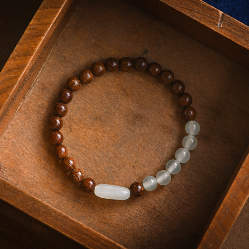 孔庙金榜题名和田玉金丝檀木古风手串女生平安手链包邮送朋友礼物