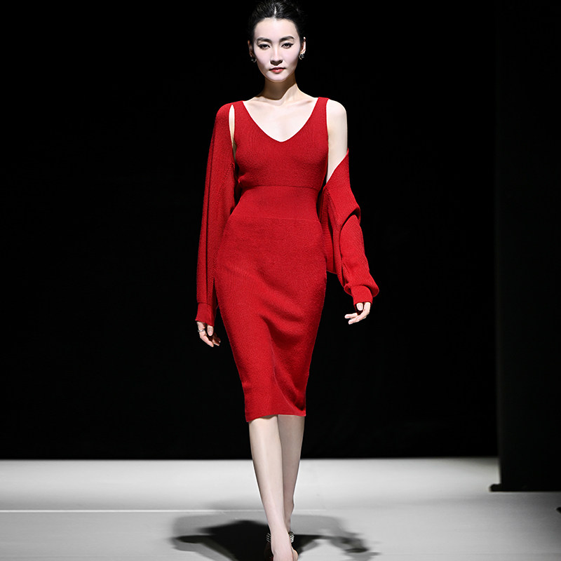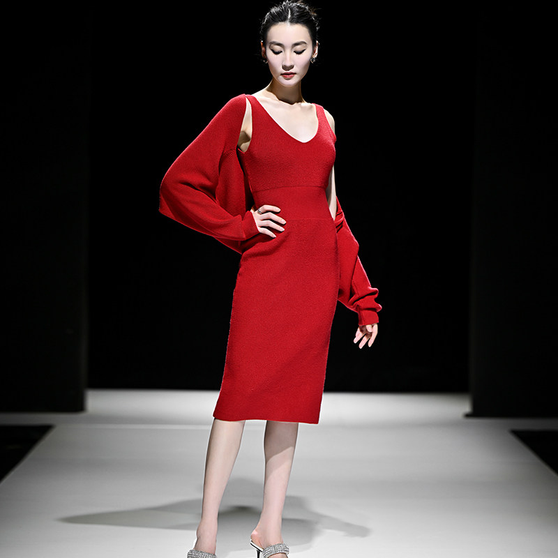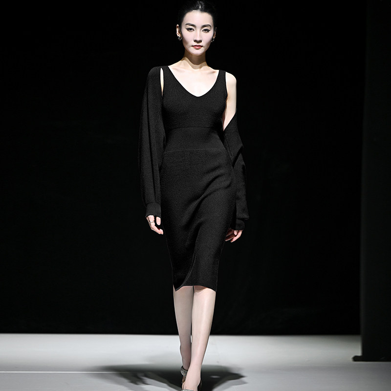 绝色时尚女装2026年早春新款V领毛衣裙披肩针织连衣裙两件套装裙