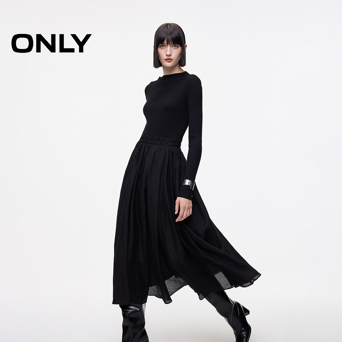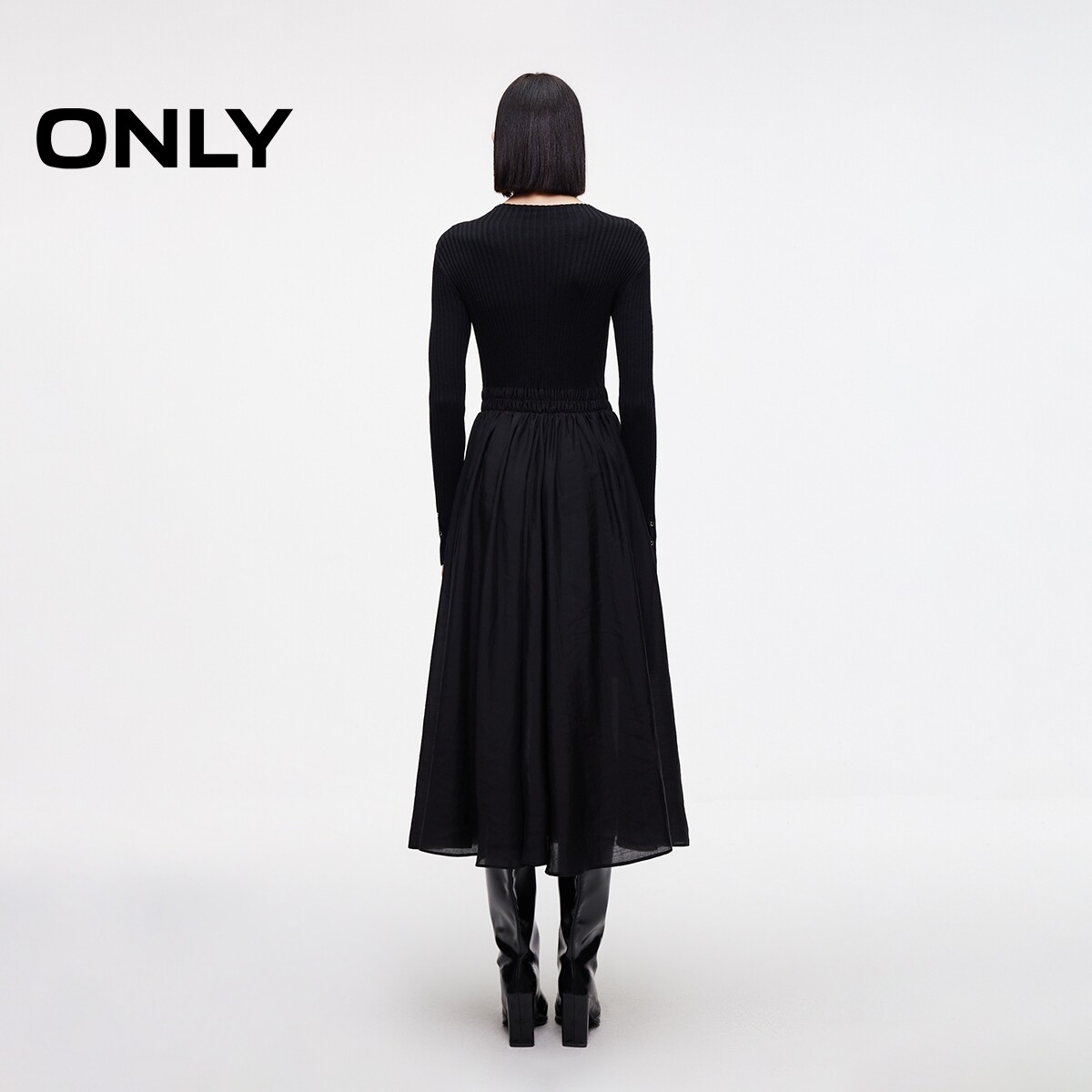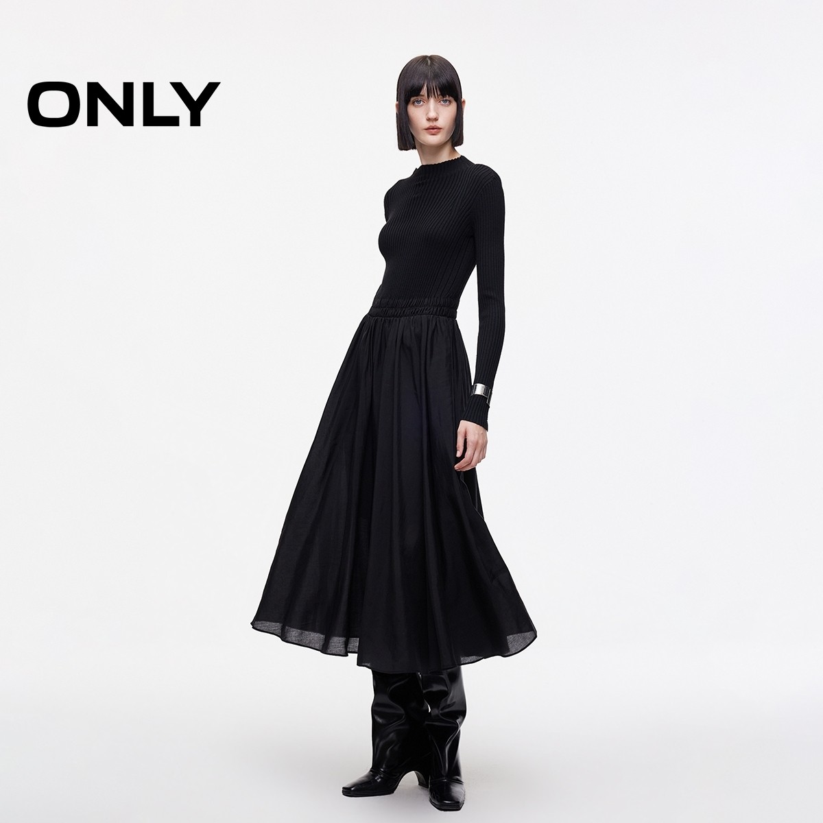 ONLY2026春季新款腰部弹力抽褶高腰纯色显瘦针织拼接长裙连衣裙女