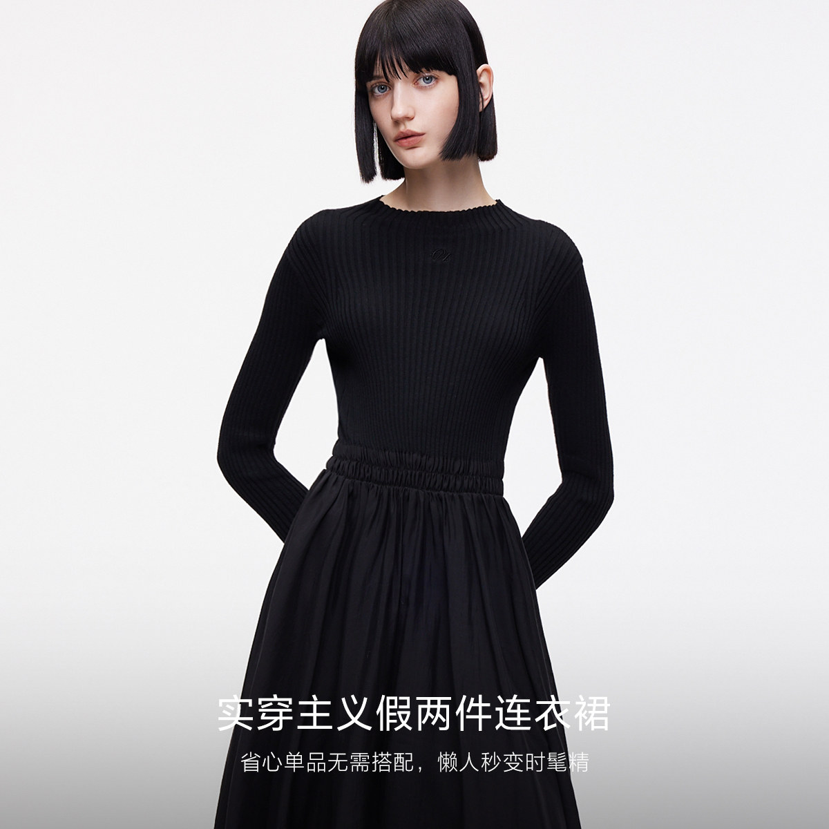 311线报网描述:异材拼接连衣裙,纵向螺纹针织