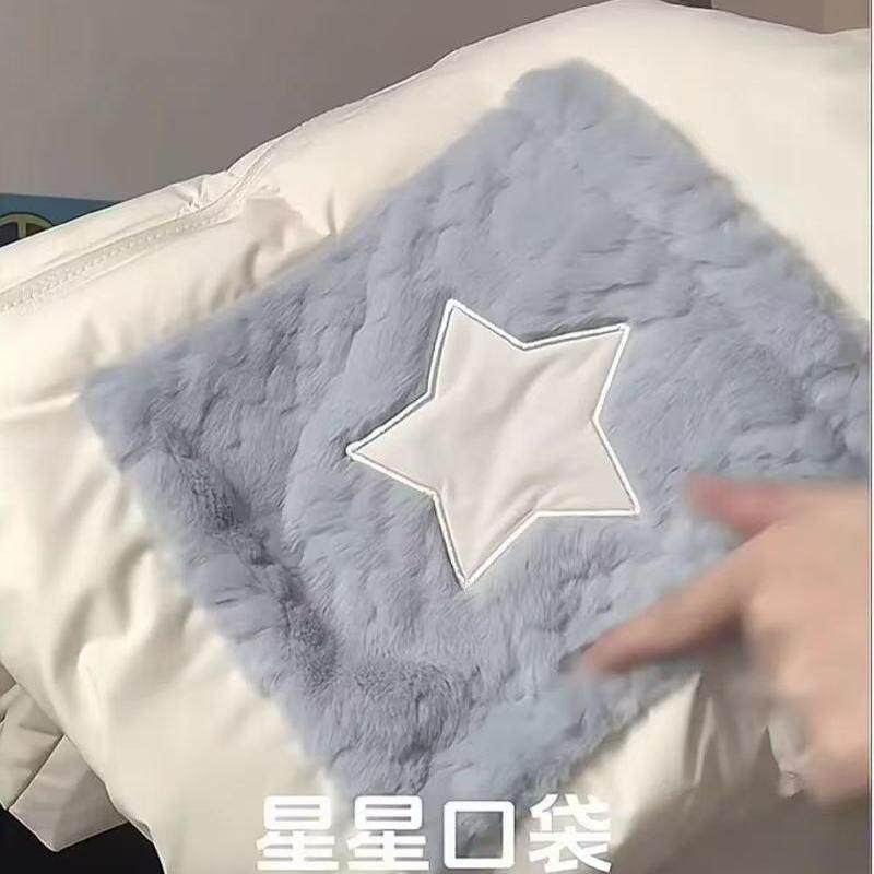韩系甜美星星围巾翻领棉服外套女冬季新款宽松加厚设计感保暖棉衣