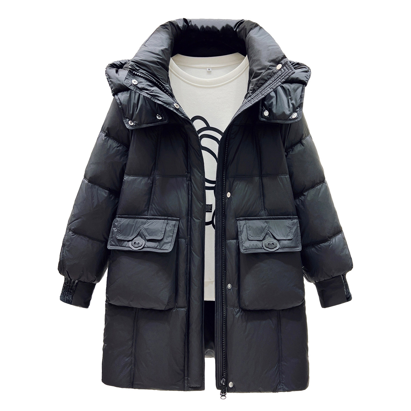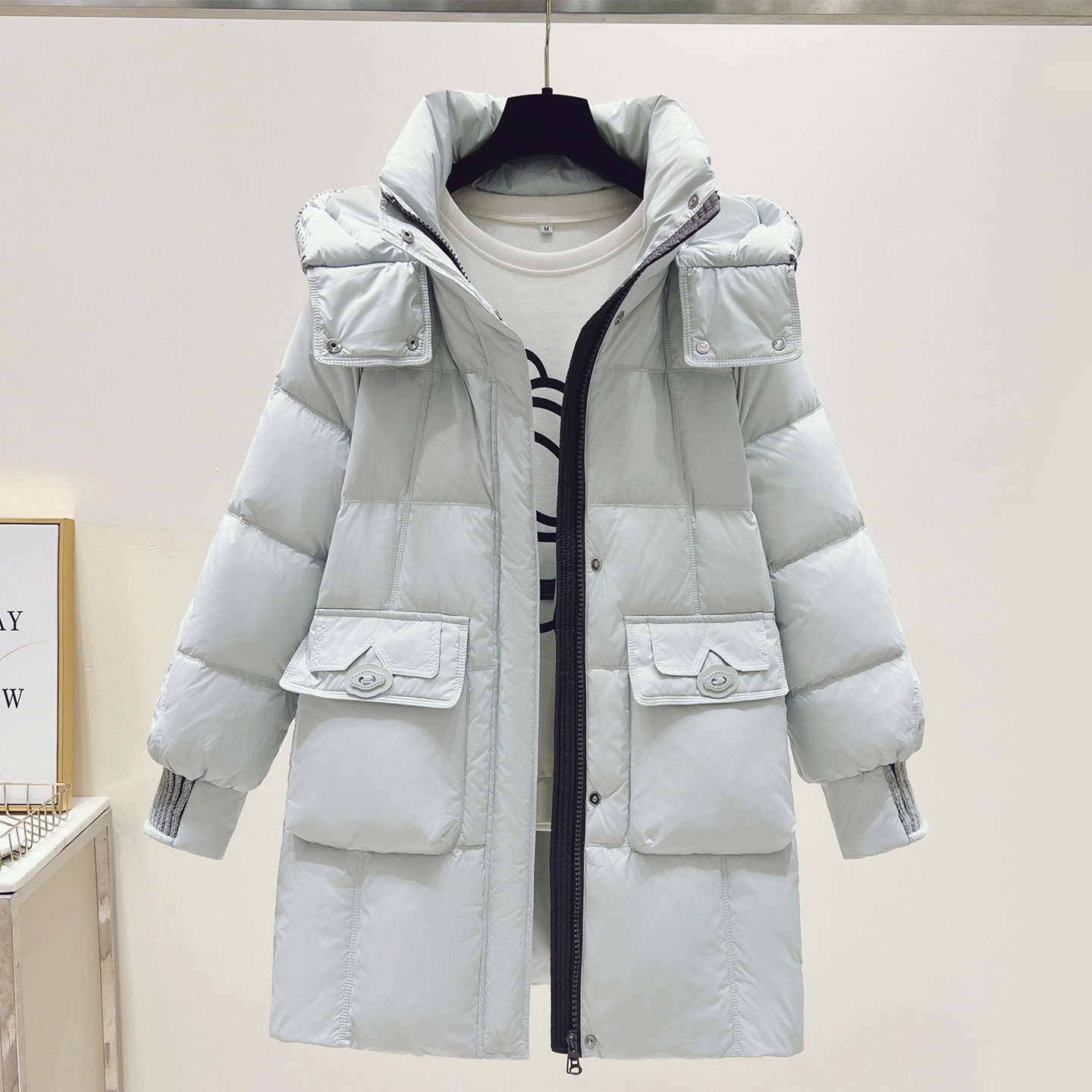 今年流行爆款连帽面包羽绒服女士2025冬季新款中长款加厚保暖外套