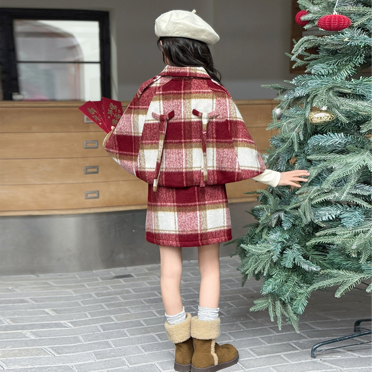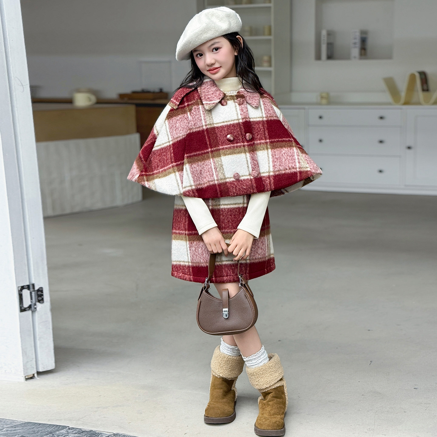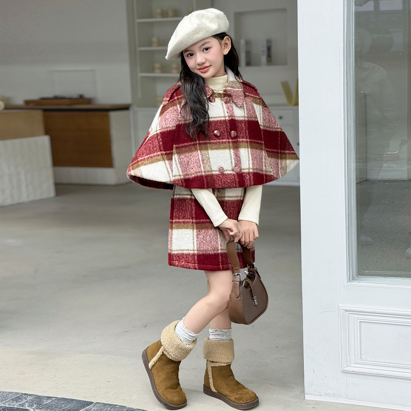 女童冬季夹棉加厚斗篷连衣裙套装2025新款韩版洋气女大童秋冬裙子