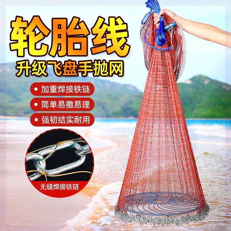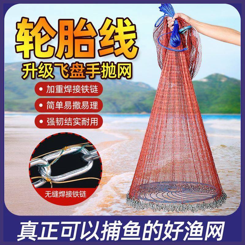 大飞盘式撒网新款加粗加重手抛网手撒网傻瓜户外捕鱼神器