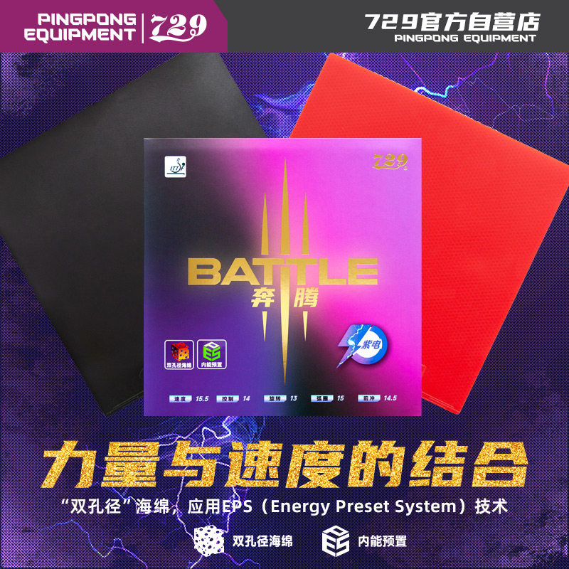 【新品】友谊729乒乓球拍胶皮奔腾3紫海绵胶皮快攻弧圈打法专业级