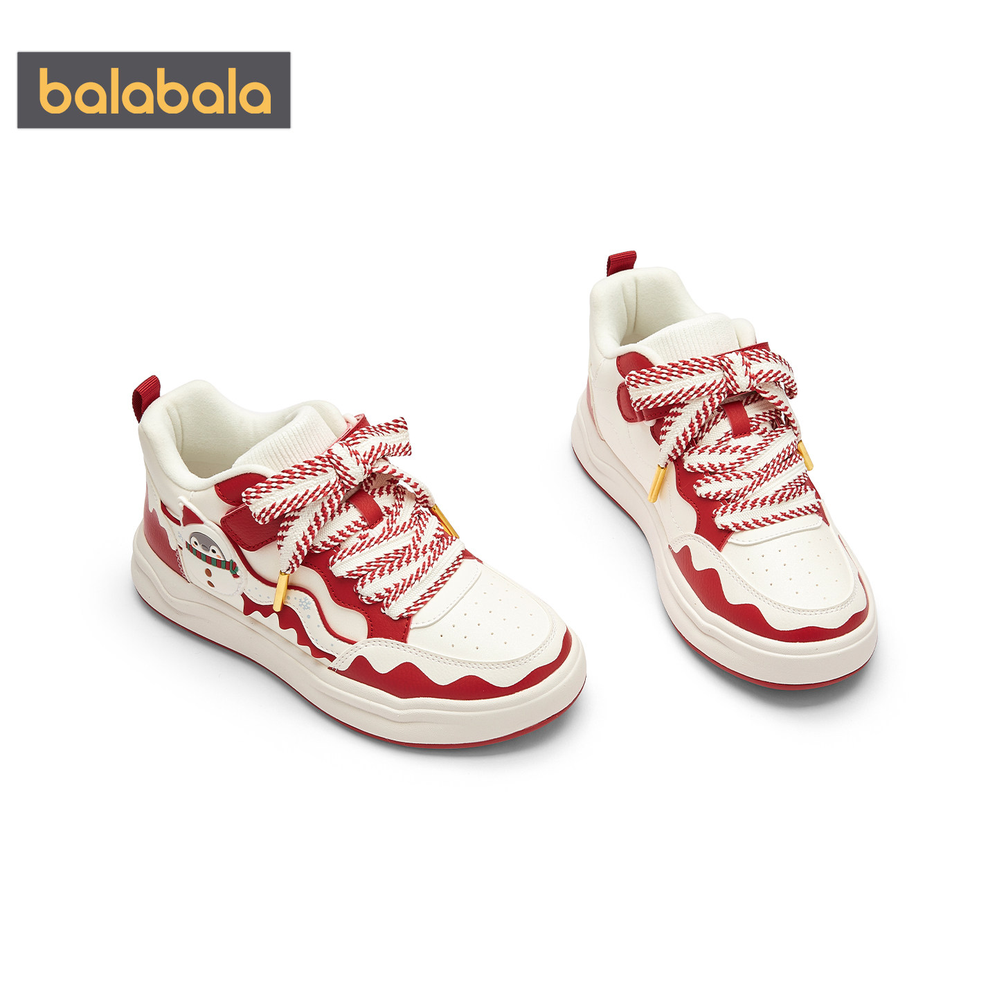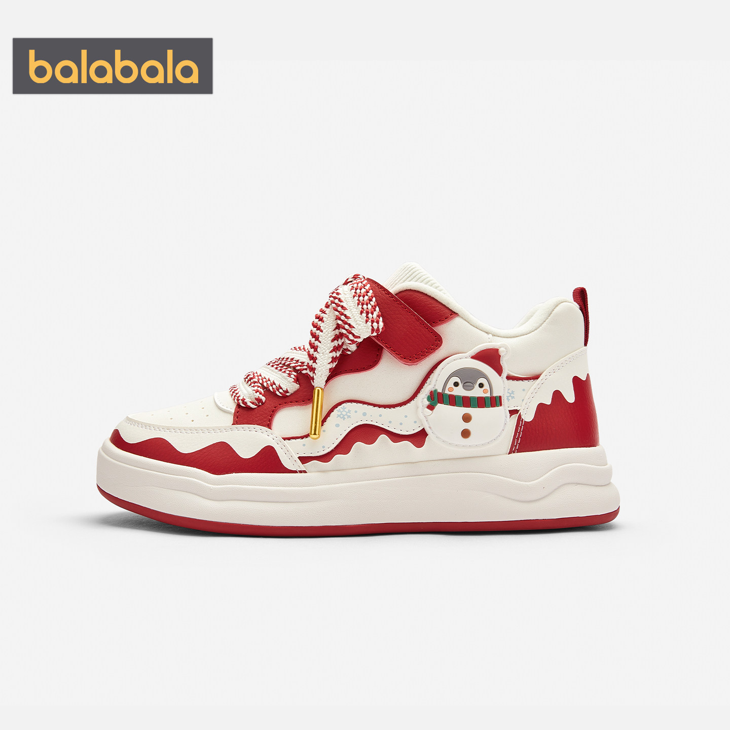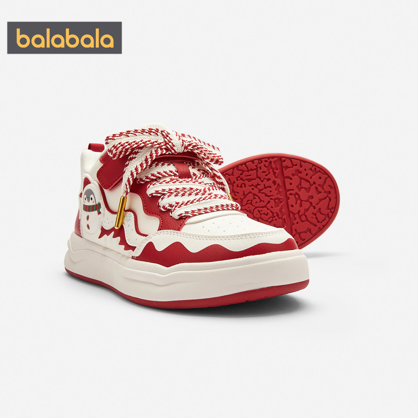 巴拉巴拉女童板鞋中大童加绒鞋子冬季新款童鞋儿童红色新年款运动