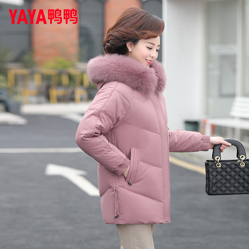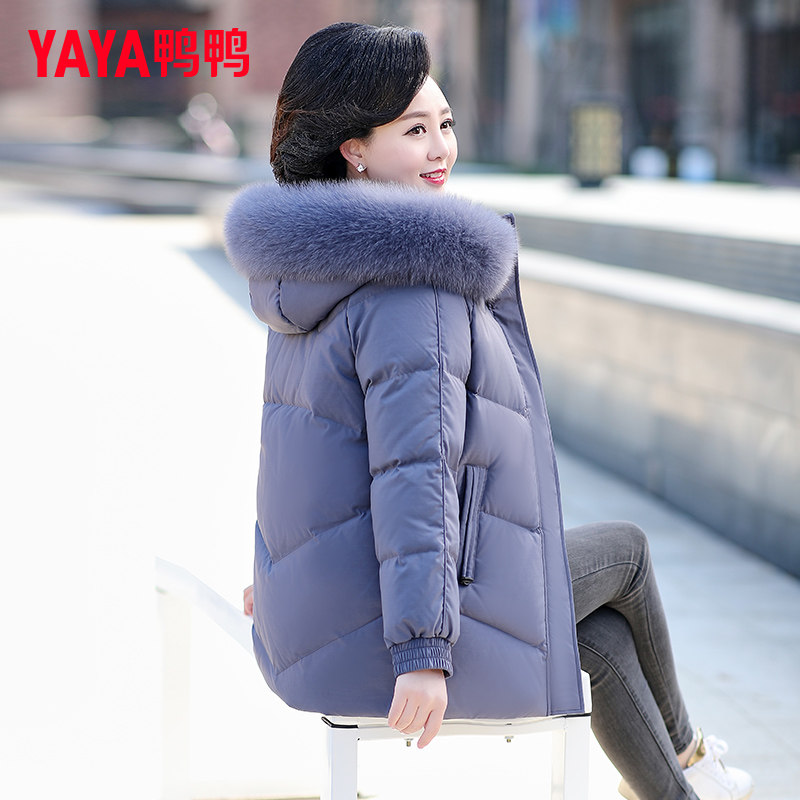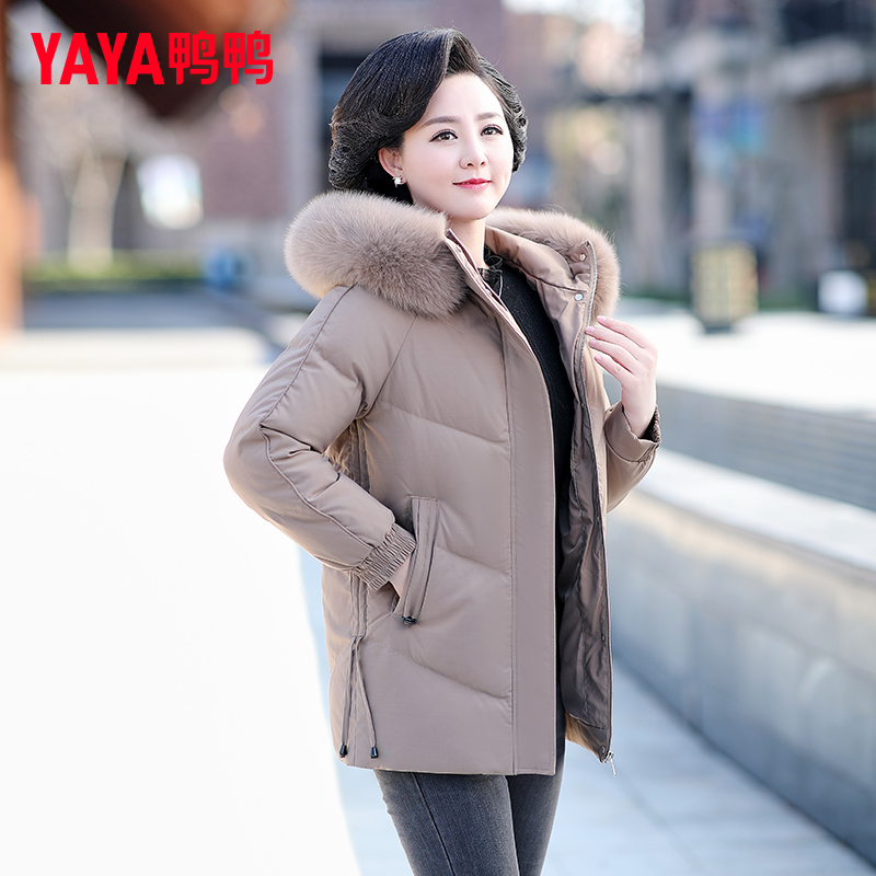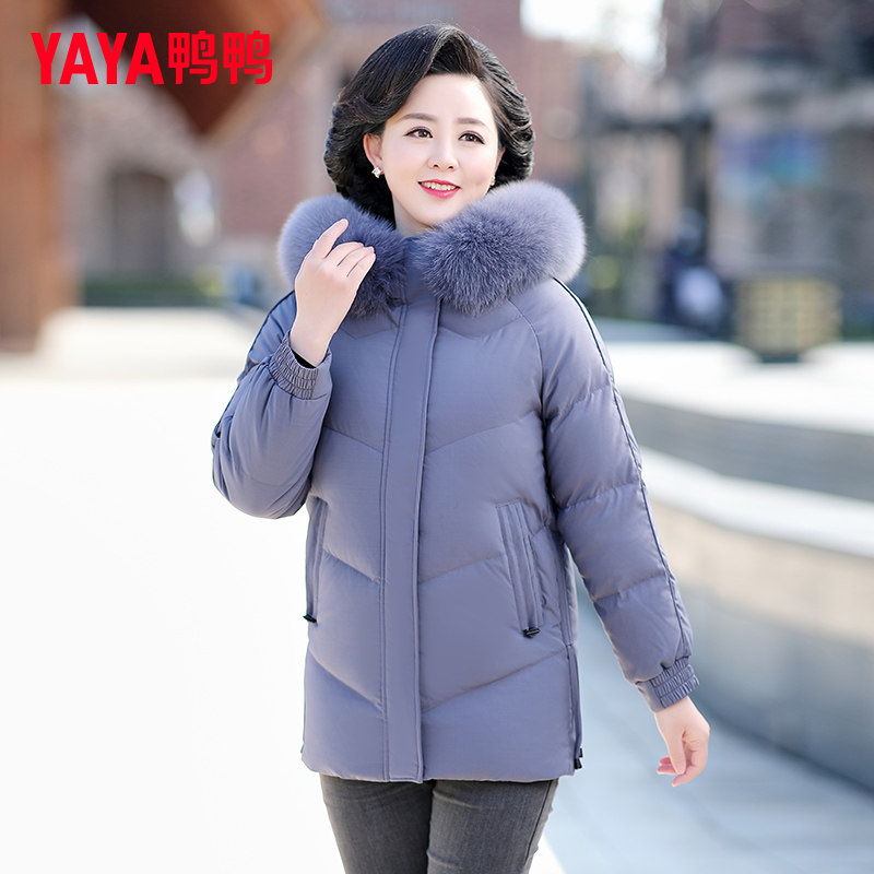 鸭鸭官方中年妈妈羽绒服女装旗舰店中长款新款中老年短款冬装外套
