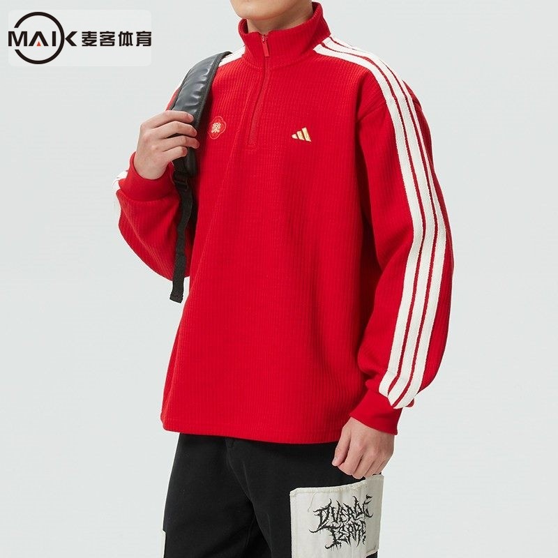 阿迪达斯马年新年款CNY红色卫衣男装休闲长袖套头衫KW4757 KW4754