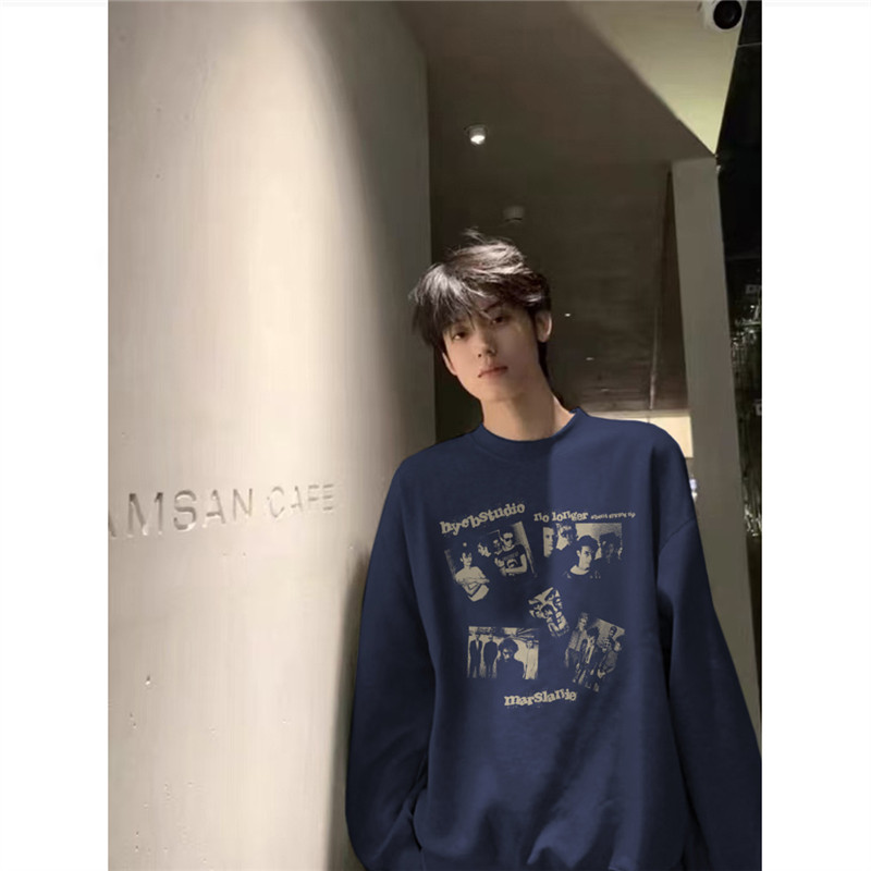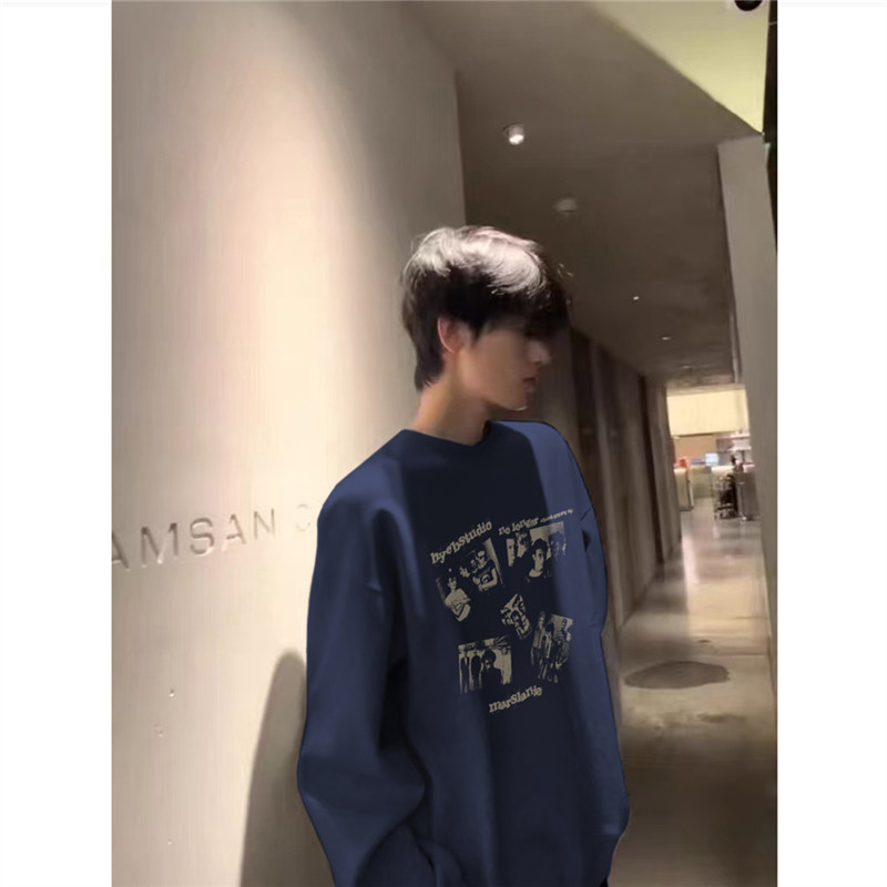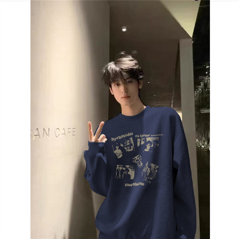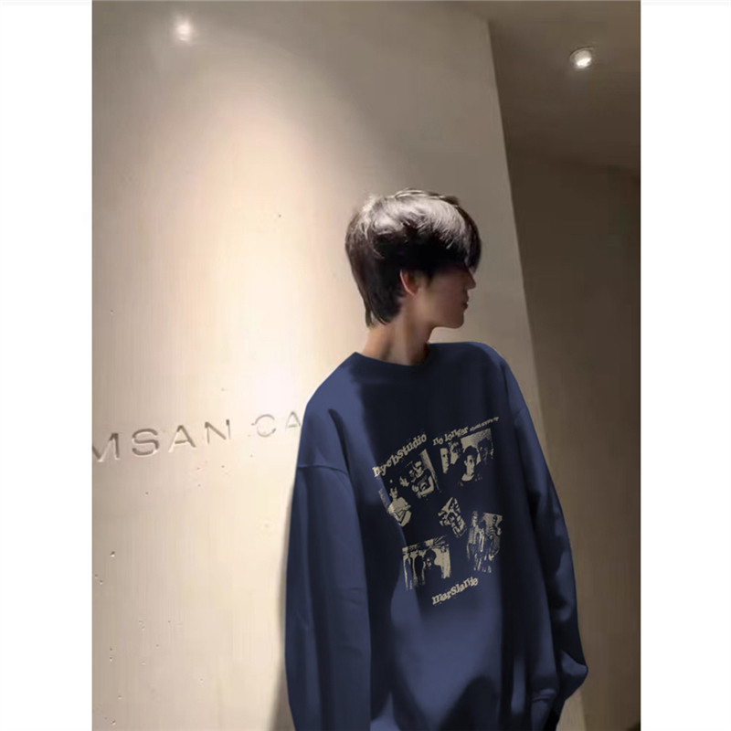 重磅纯棉高级感加绒无帽卫衣男款秋冬加厚美式潮流青少年长袖上衣