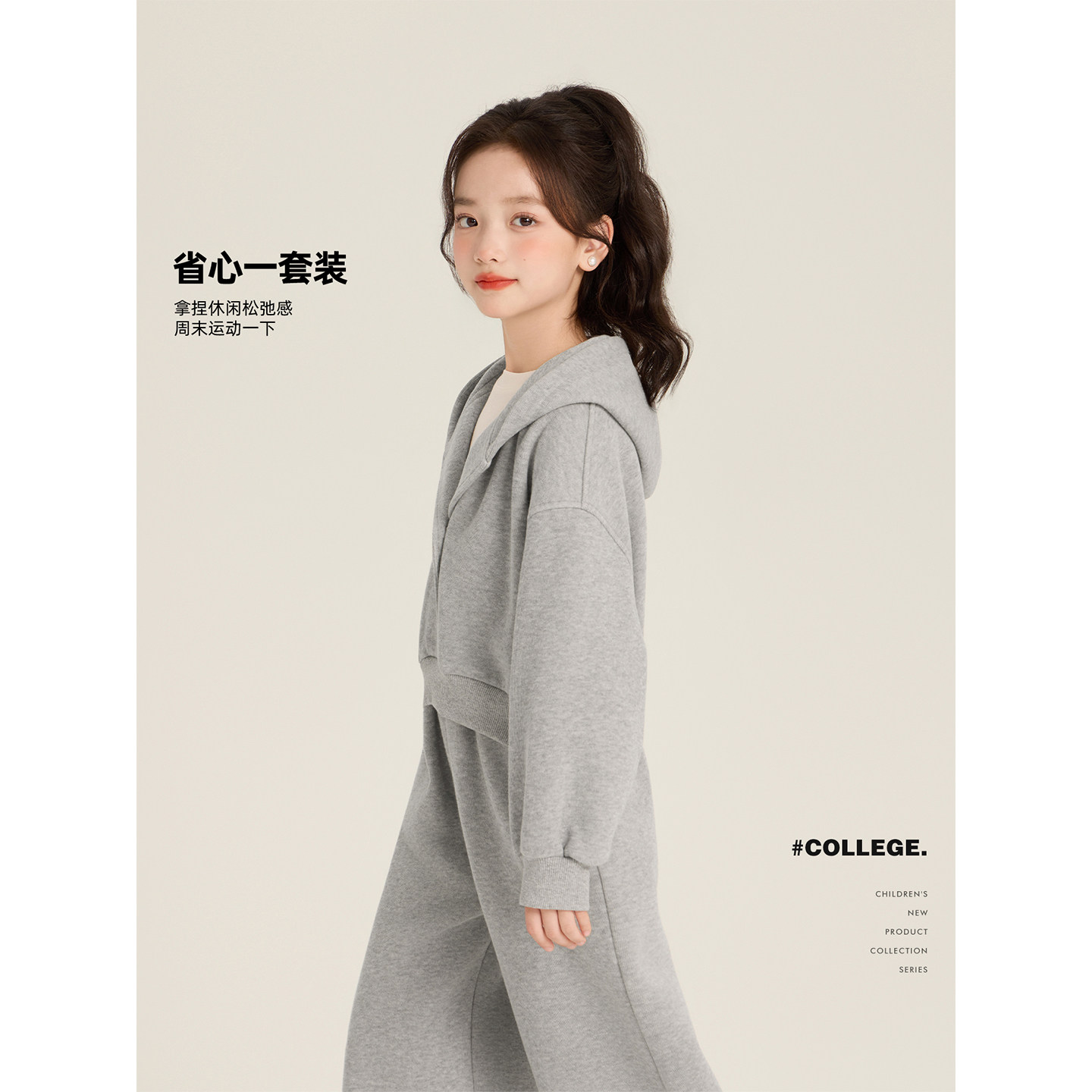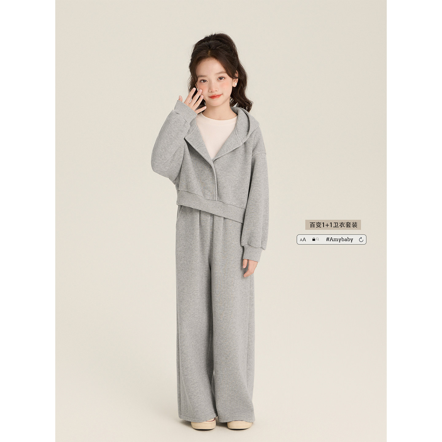 Amybaby女童套装冬季2025新款高级感不规则连帽外套百搭阔腿裤