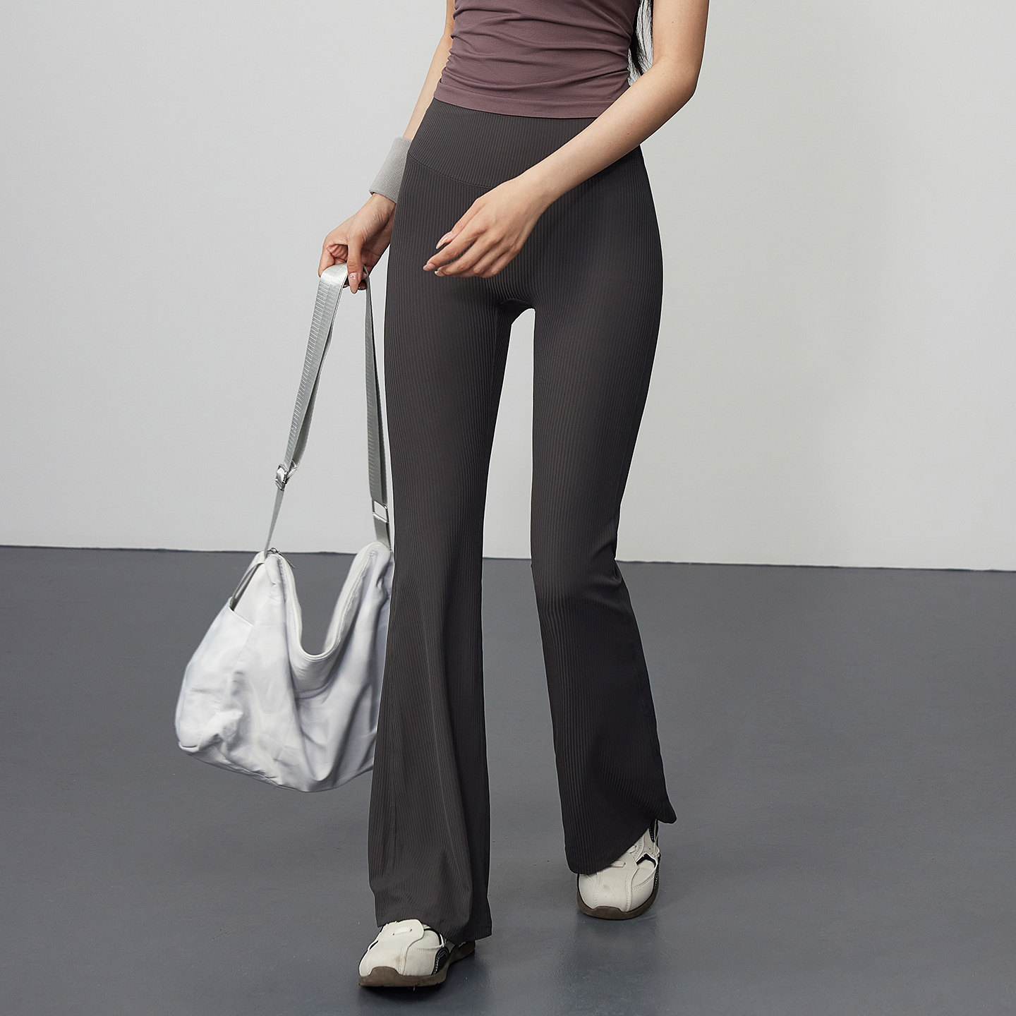 Mitaogirl螺纹高腰喇叭裤女无尴尬线提臀瑜伽裤户外运动V腰健身裤