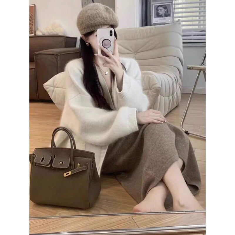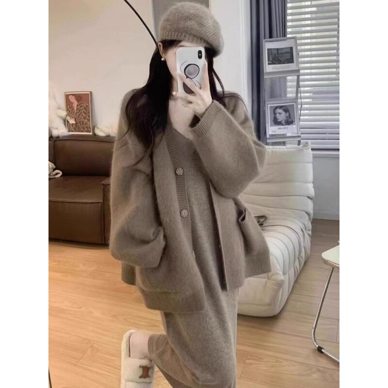 秋冬装2025新款女搭配一整套茶洗穿搭法式连衣裙子两件套装