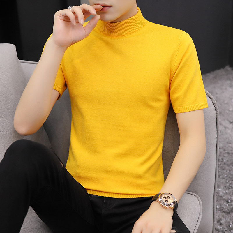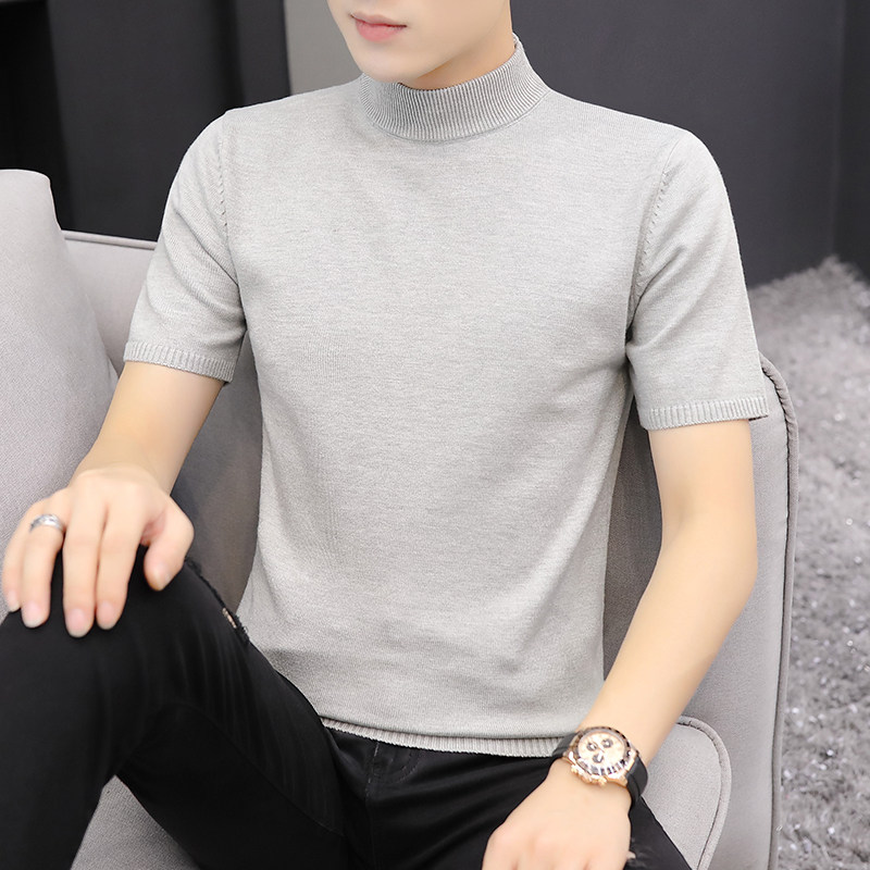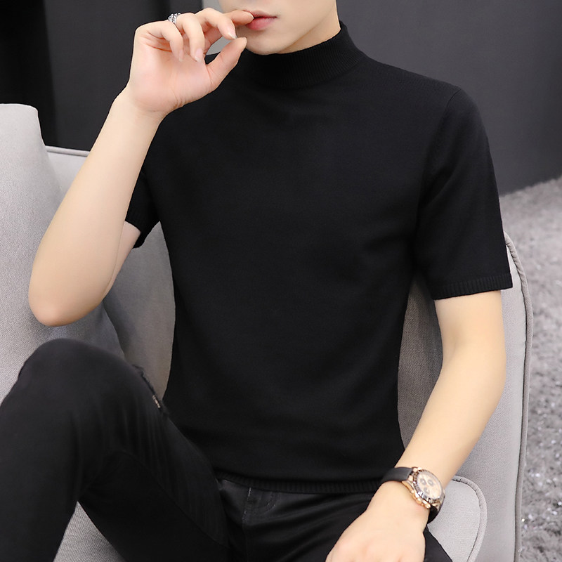 半高领毛衣短袖男款秋冬季加厚针织衫半袖t恤线衣男士纯色打底衫