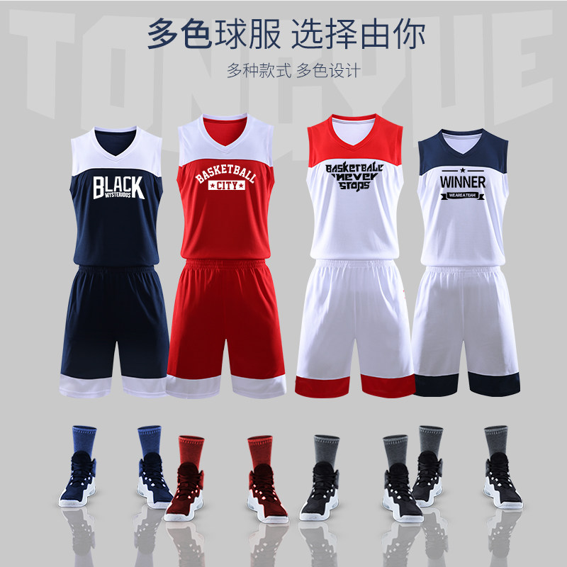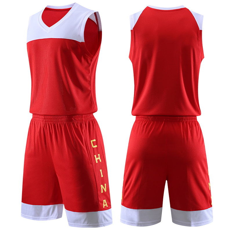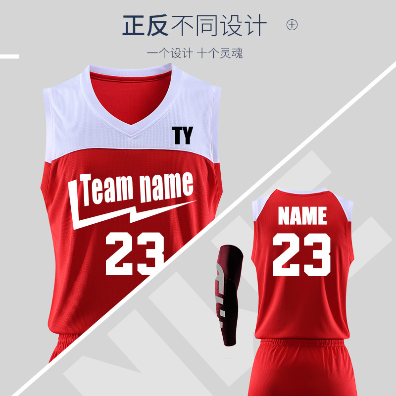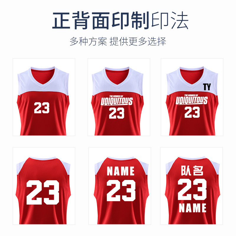 新款篮球服套装男定制团购宽松运动比赛印字球服学生训练红色球衣