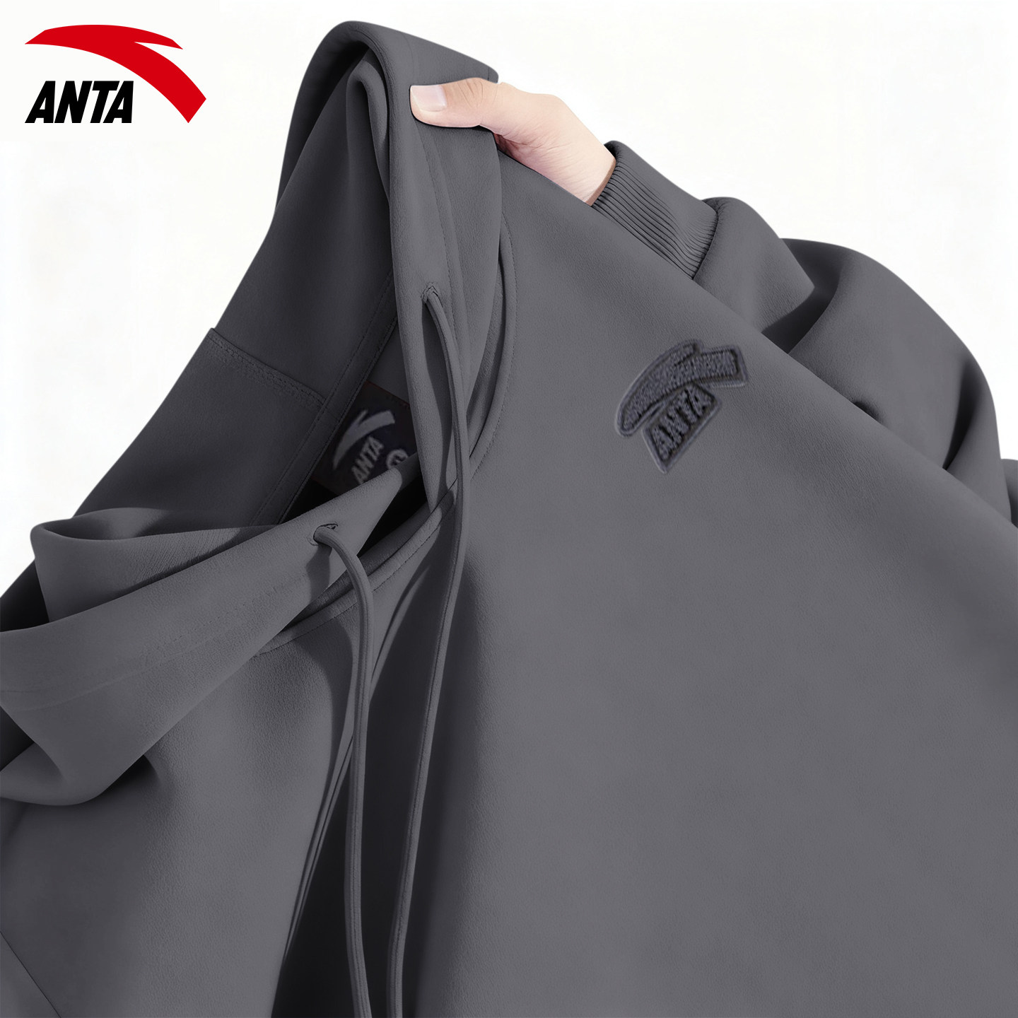 安踏运动连帽卫衣男款春季2026新款青少年潮流宽松长袖百搭套头衫