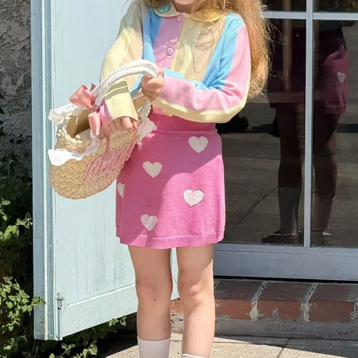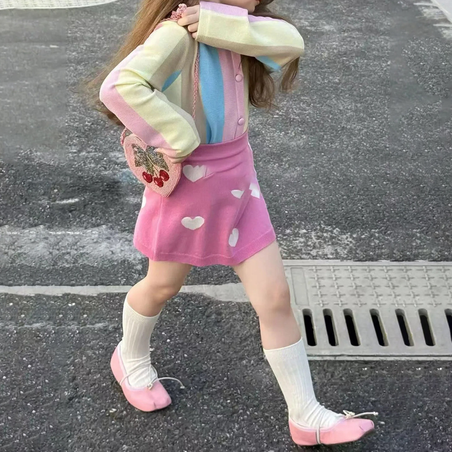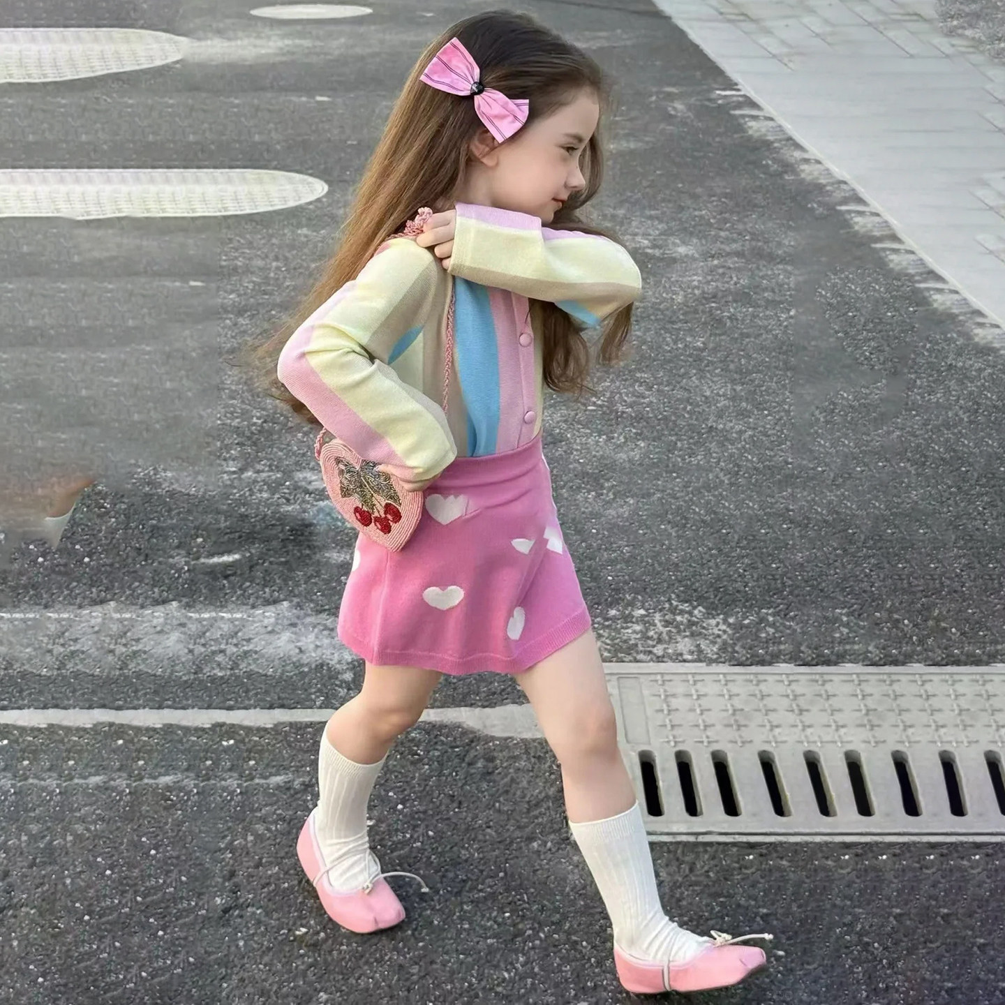 女童春款套装2026新款洋气儿童韩版女宝宝时尚拼色上衣爱心半身裙