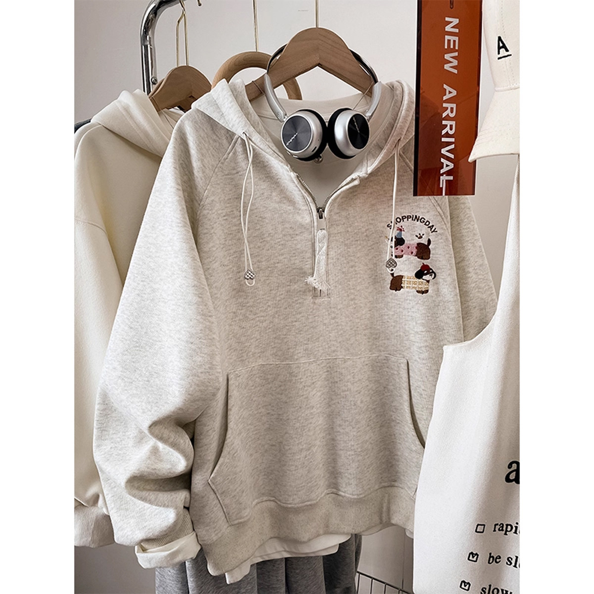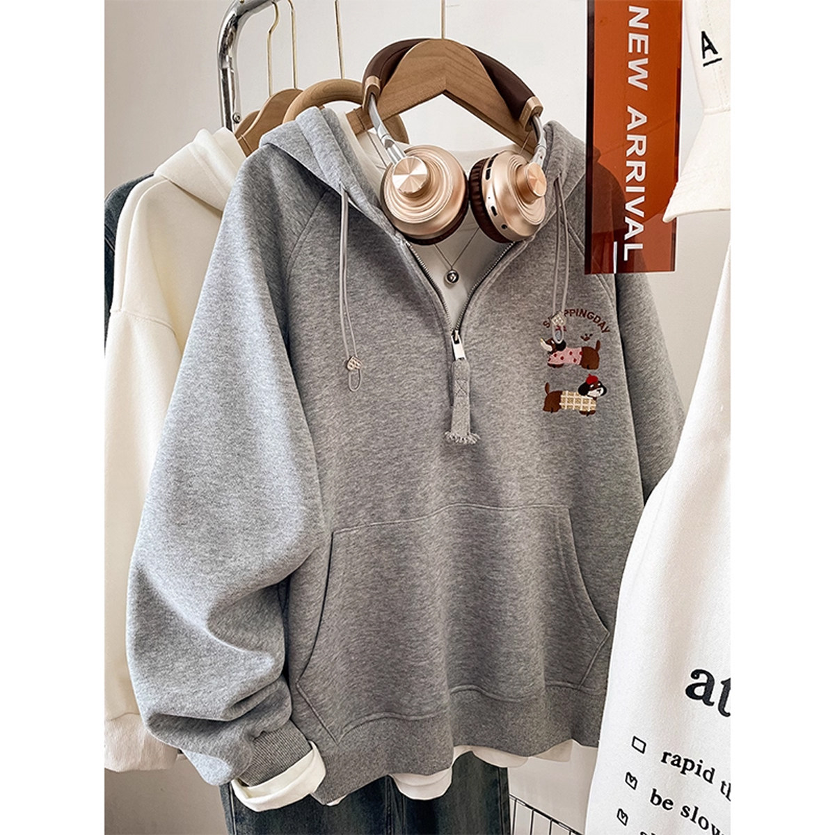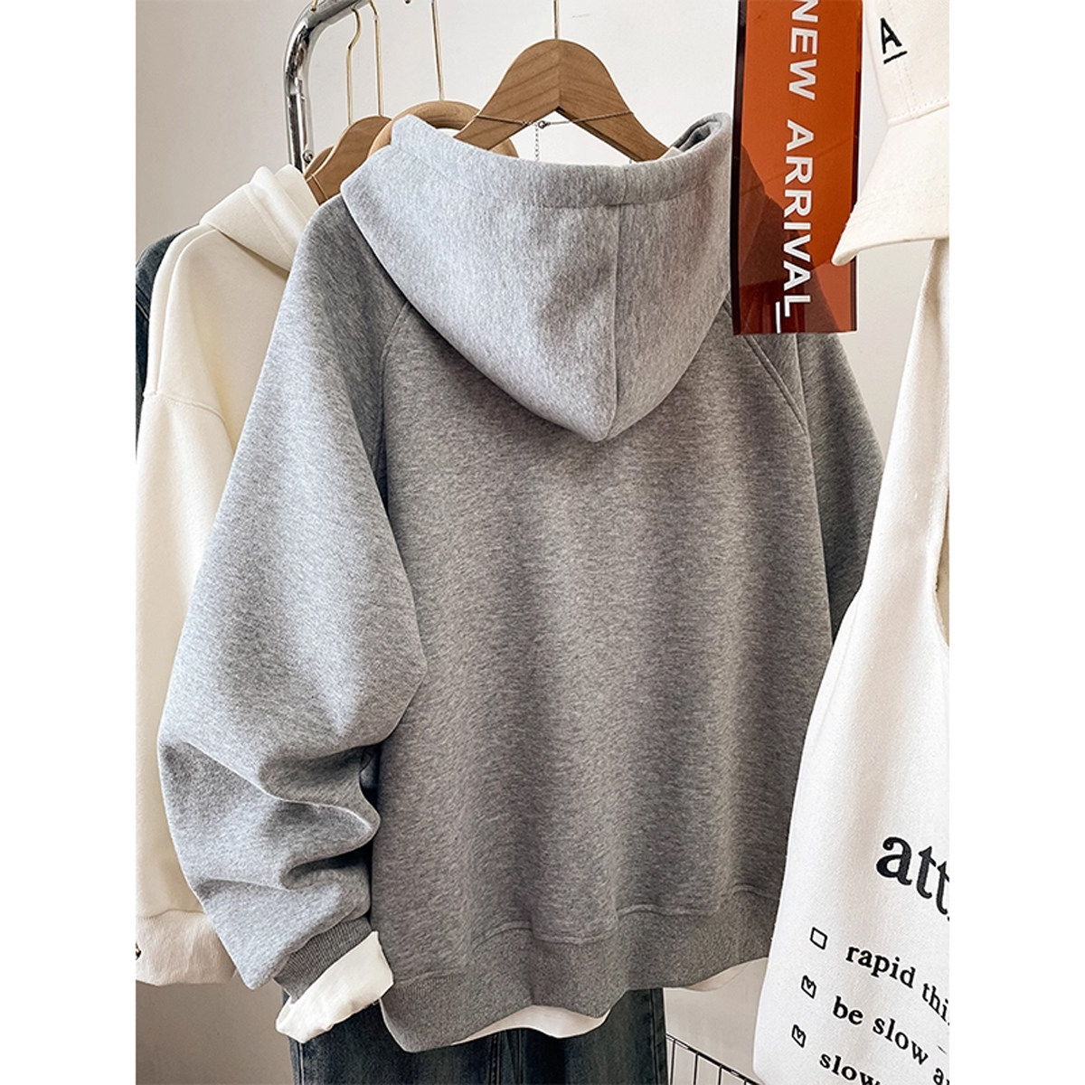 2026新款小个子宽松连帽卫衣女款秋冬季加绒加厚大码胖mm刺绣上衣