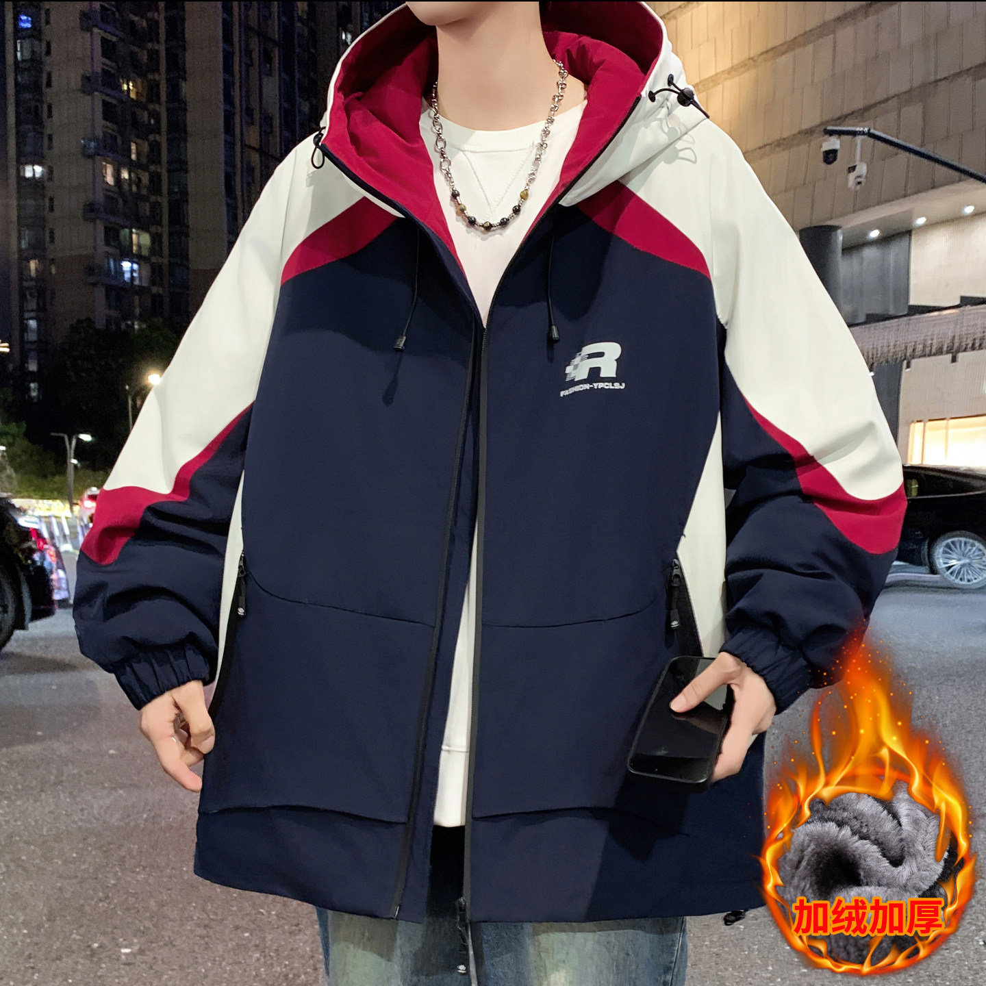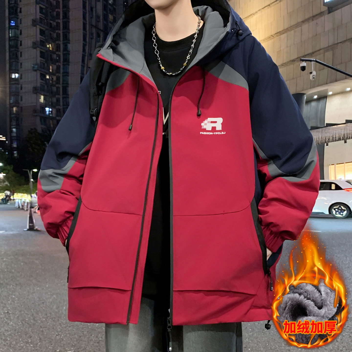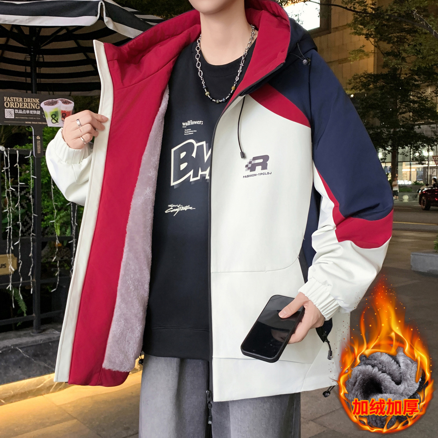 秋冬款加绒加厚外套男孩初中高中学生帅气棉衣青少年大童冬装夹克