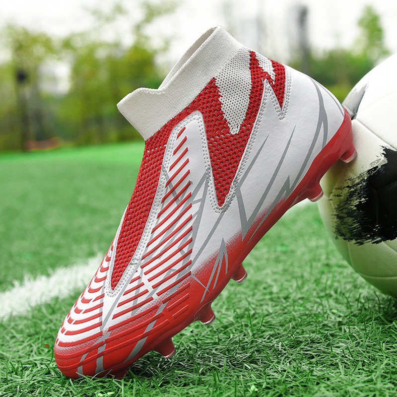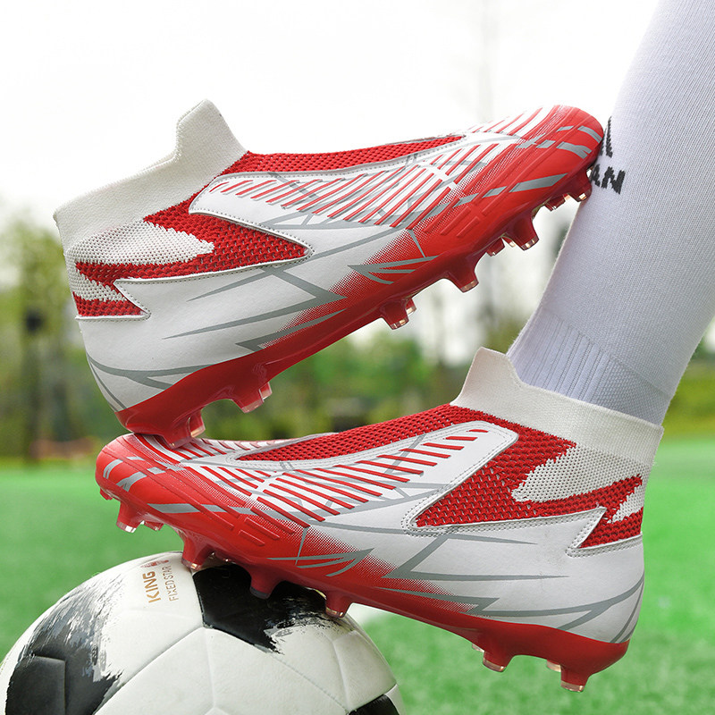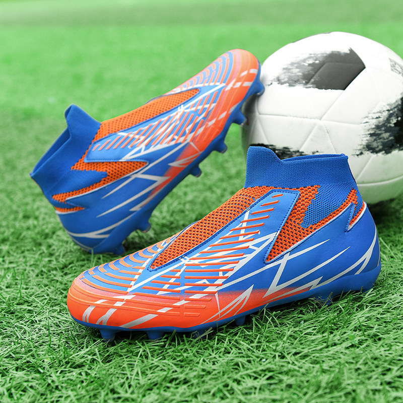 高帮免系带无鞋带套脚长钉碎钉成人儿童足球鞋学生足球训练鞋男鞋