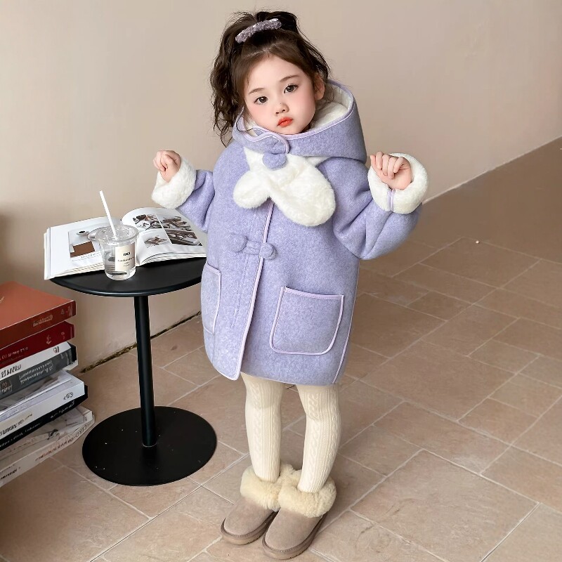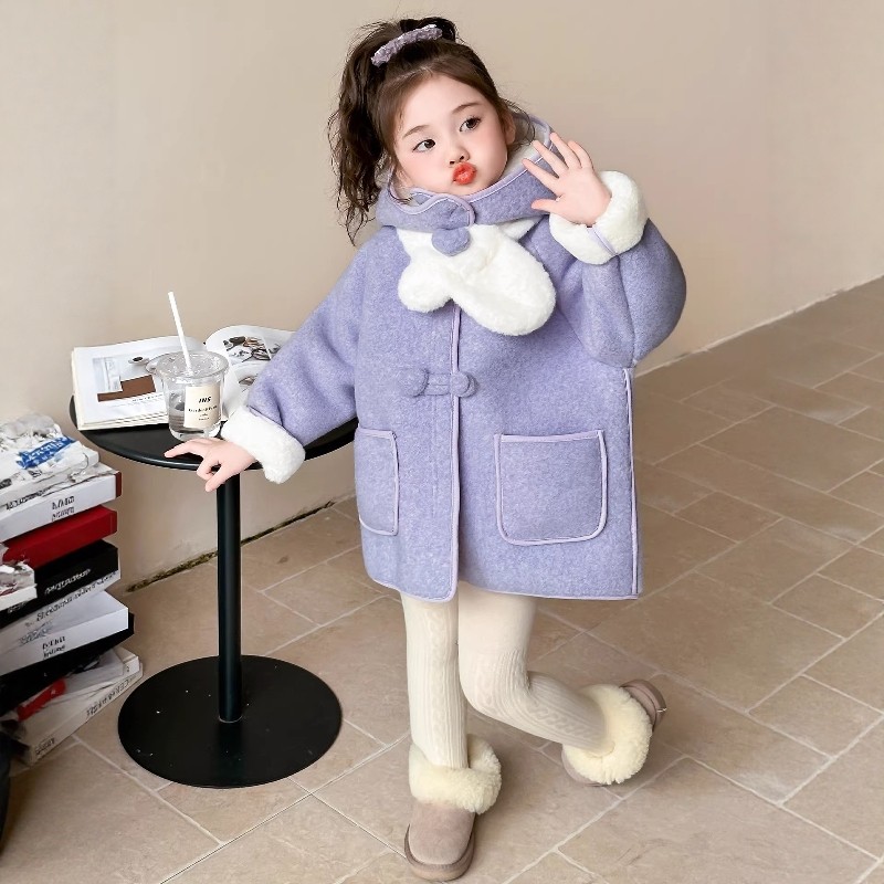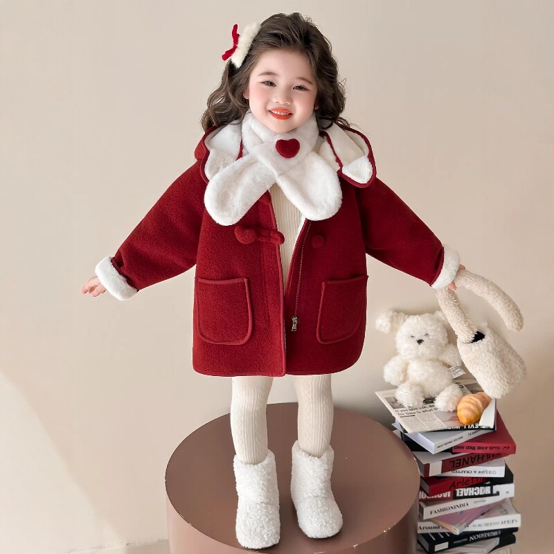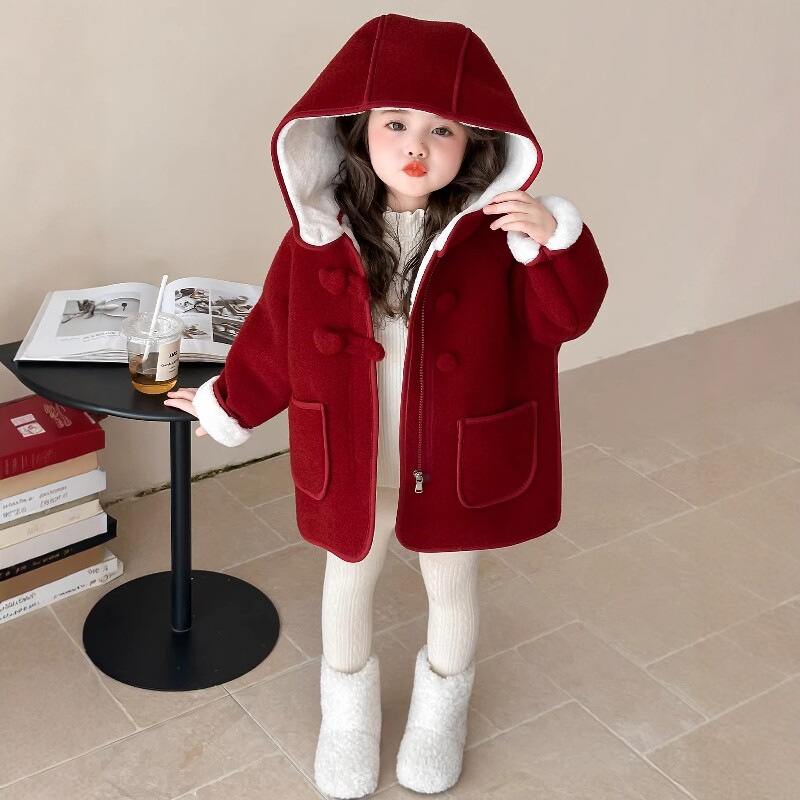 法国Uamtor女童冬装外套2026新款洋气宝宝加厚巨好看红色毛呢大衣