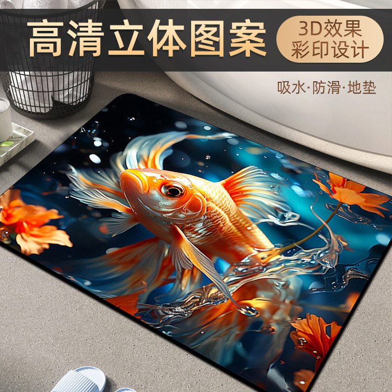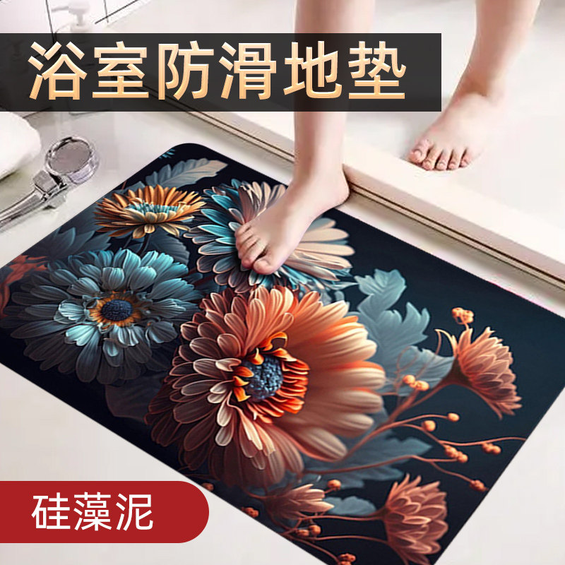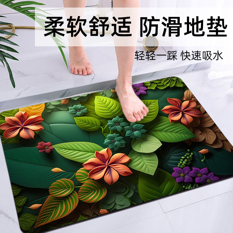 硅藻泥吸水垫卫生间浴室厕所门口脚垫地垫3d立体速干防滑垫子地毯