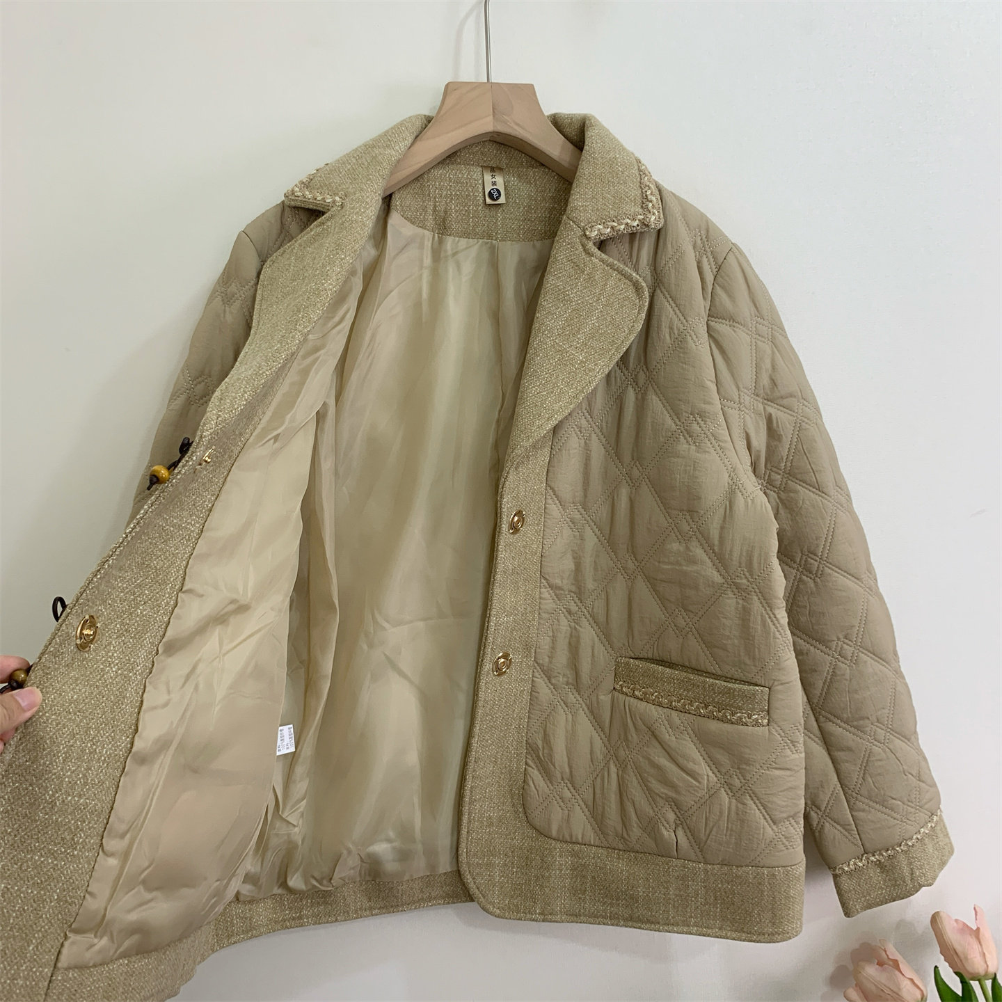 妈妈秋冬小香风外套2025新款气质翻领保暖棉衣中老年女装加厚上衣